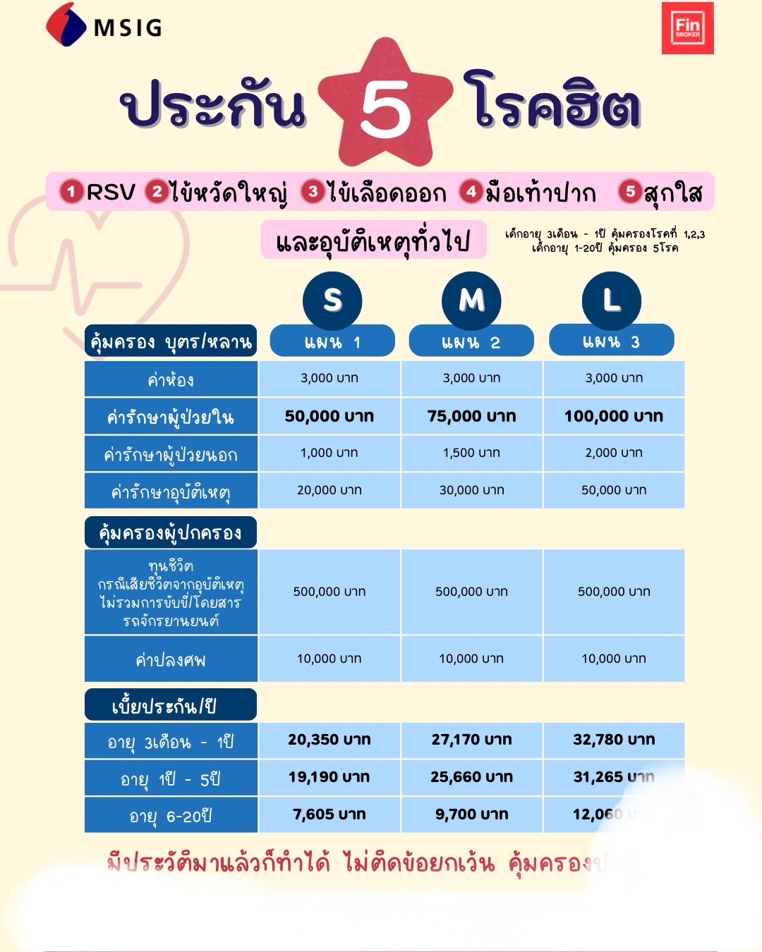ซื้อประกันเด็ก5โรคMSIG กับตัวแทน ผ่อน 6เดือน