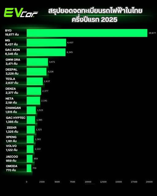 [ข่าว] ยอดจดทะเบียนรถยนต์ไฟฟ้า 100% (BEV) ในไทย ช่วงครึ่งปีแรก 2025