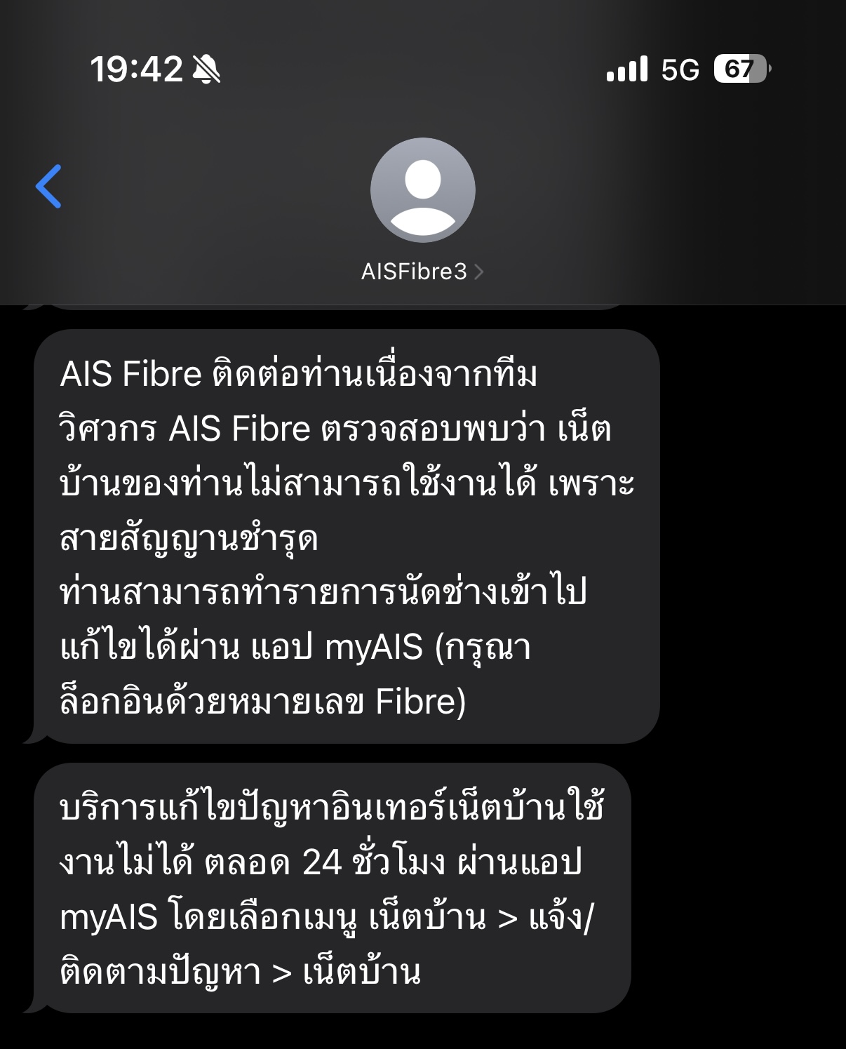 เรื่องของเรื่องคือเมื่อวาน AIS ส่ง SMS มาว่าสายสัญญาณชำรุดและจะส่งช่างมาซ่อมในวันนี้