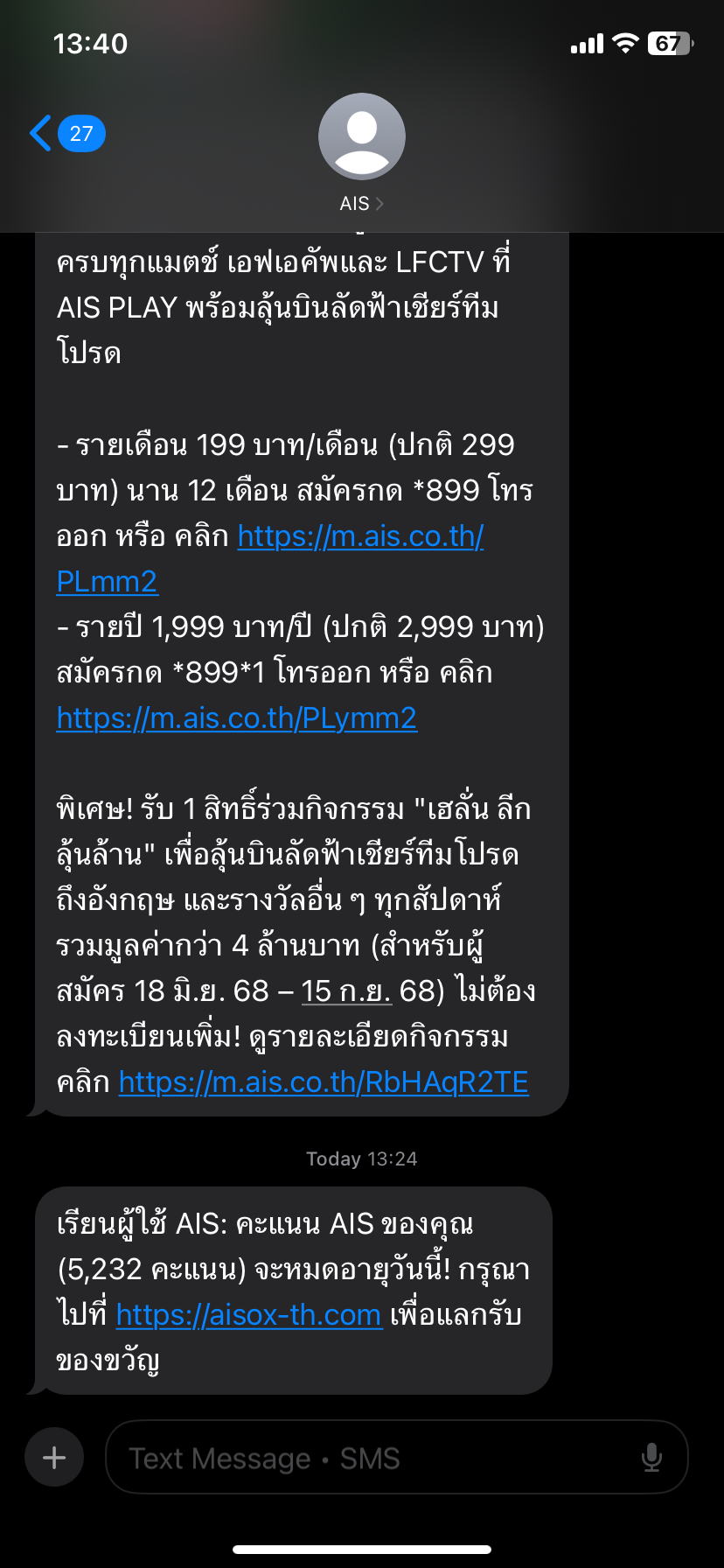 อันนี้คือพอยต์อะไรเหรอครับ ไม่เจอใน my ais ด้วย แต่ได้รับมาจากช่องข้อความเอไอเอส เลยอยากรู้ว่าคืออะไร