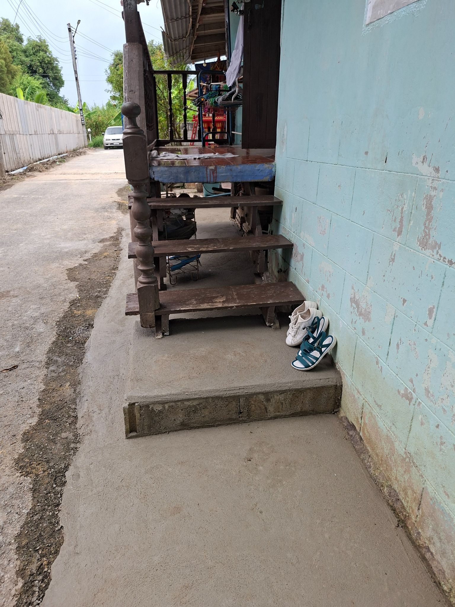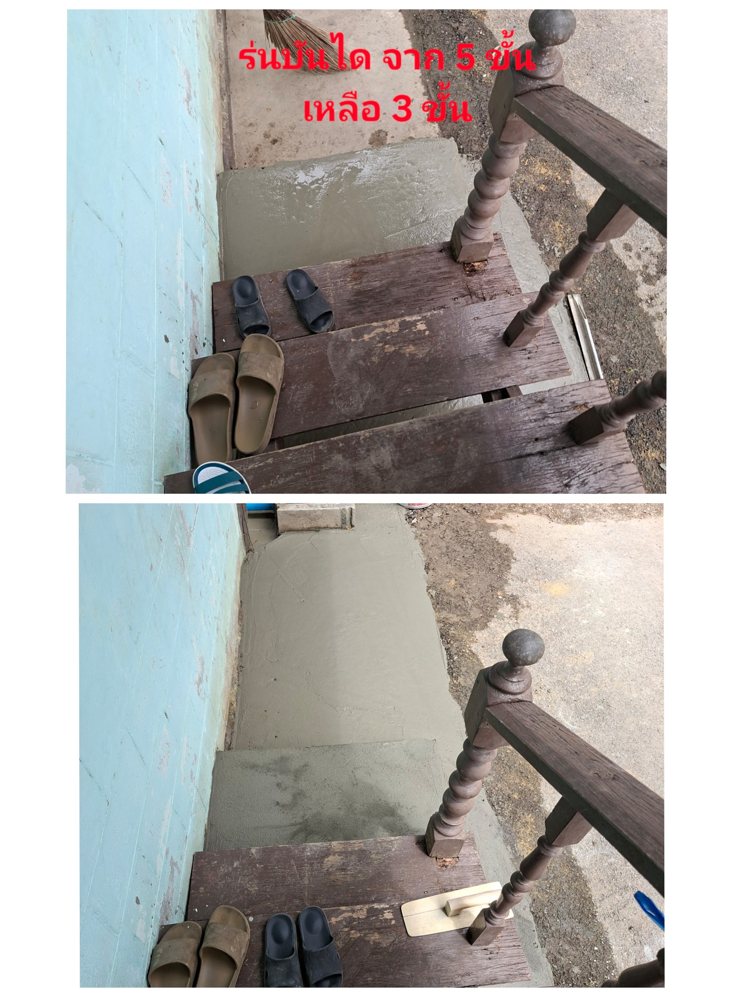 ...บันไดตรงเดิมเป็นบันได 6 ขั้น(นับจำนวนระยะตั้งหรือลูกตั้ง) 5 ขั้นลูกนอน แต่ขั้นที่ 1 และ 2 ขนาดขั้นผิดเพี้ยนจากขั้นอื่น โดยมีความสูงขั้นต่ำ แต่ขั้นที่เหลือก็น่าจะมีความสูงขั้นที่สูงเกินกว่าข้อกำหนดของกฎหมาย ที่มีข้อกำหนดไม่เกิน 200 mm