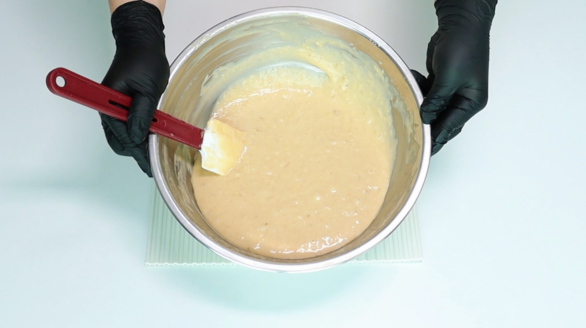 - เติมกล้วยหอมบดลงไป ผสมให้เข้ากันอีกครั้ง