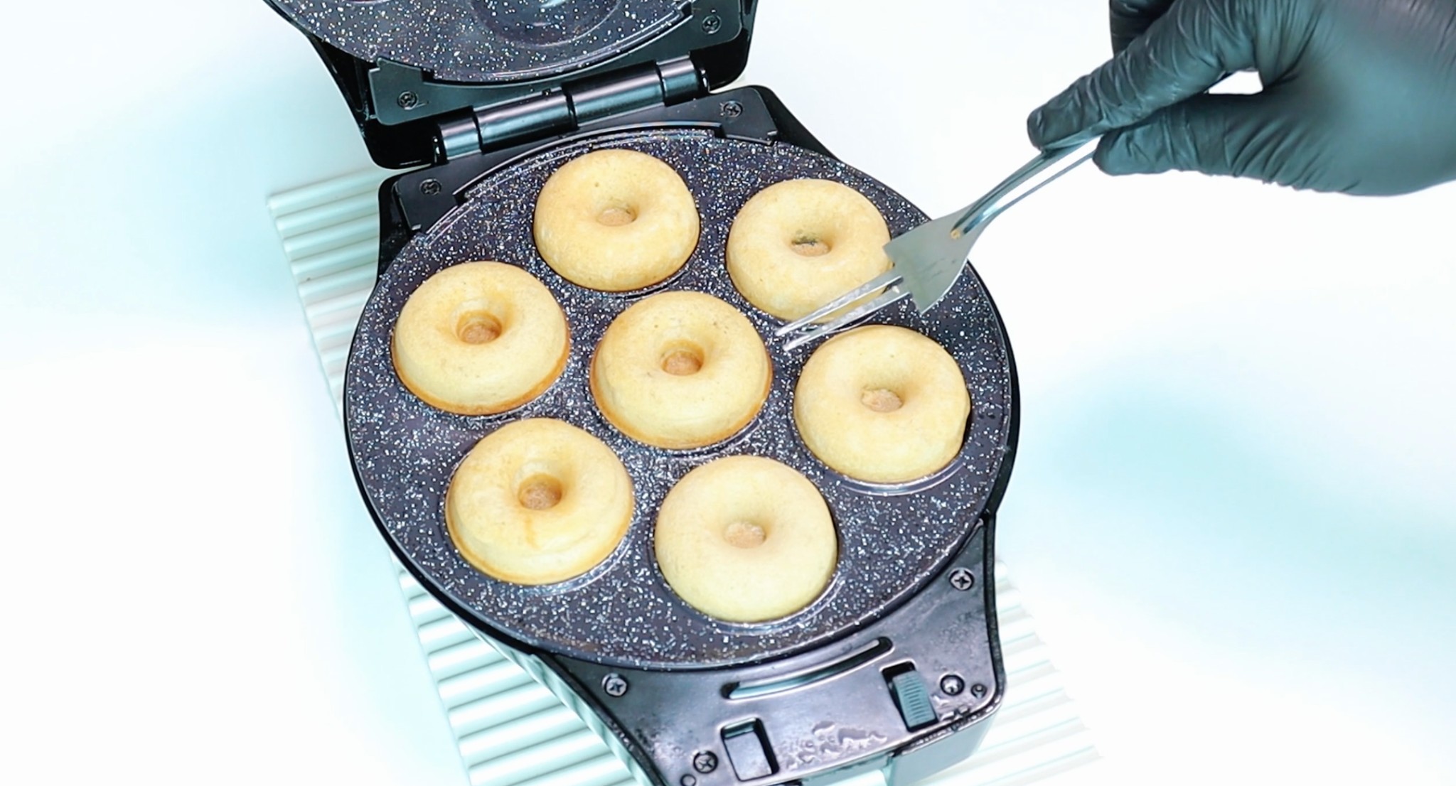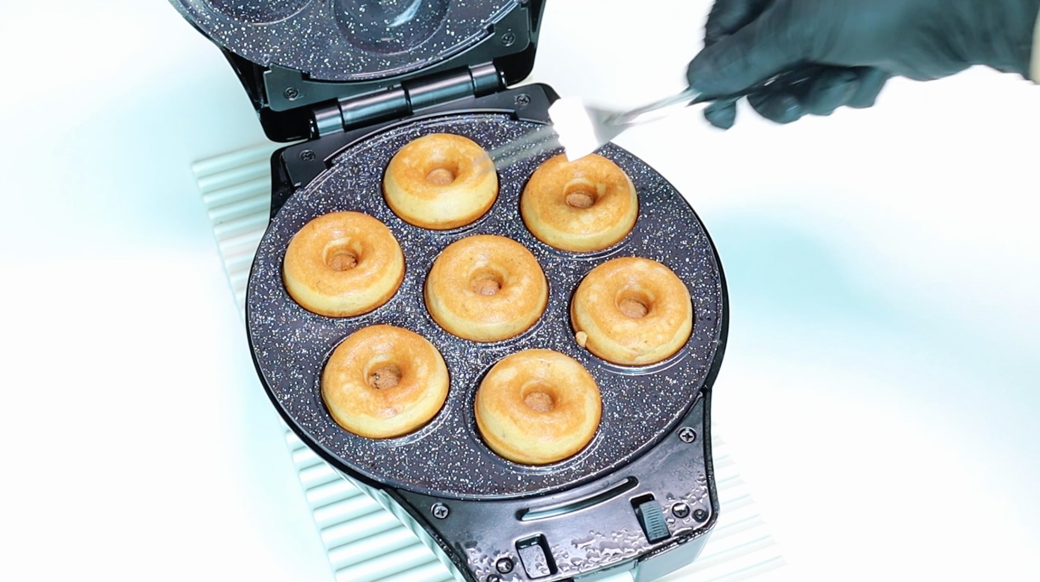 - ตักแป้งใส่เครื่องอบโดนัทจิ๋ว (Mini Donut Maker)