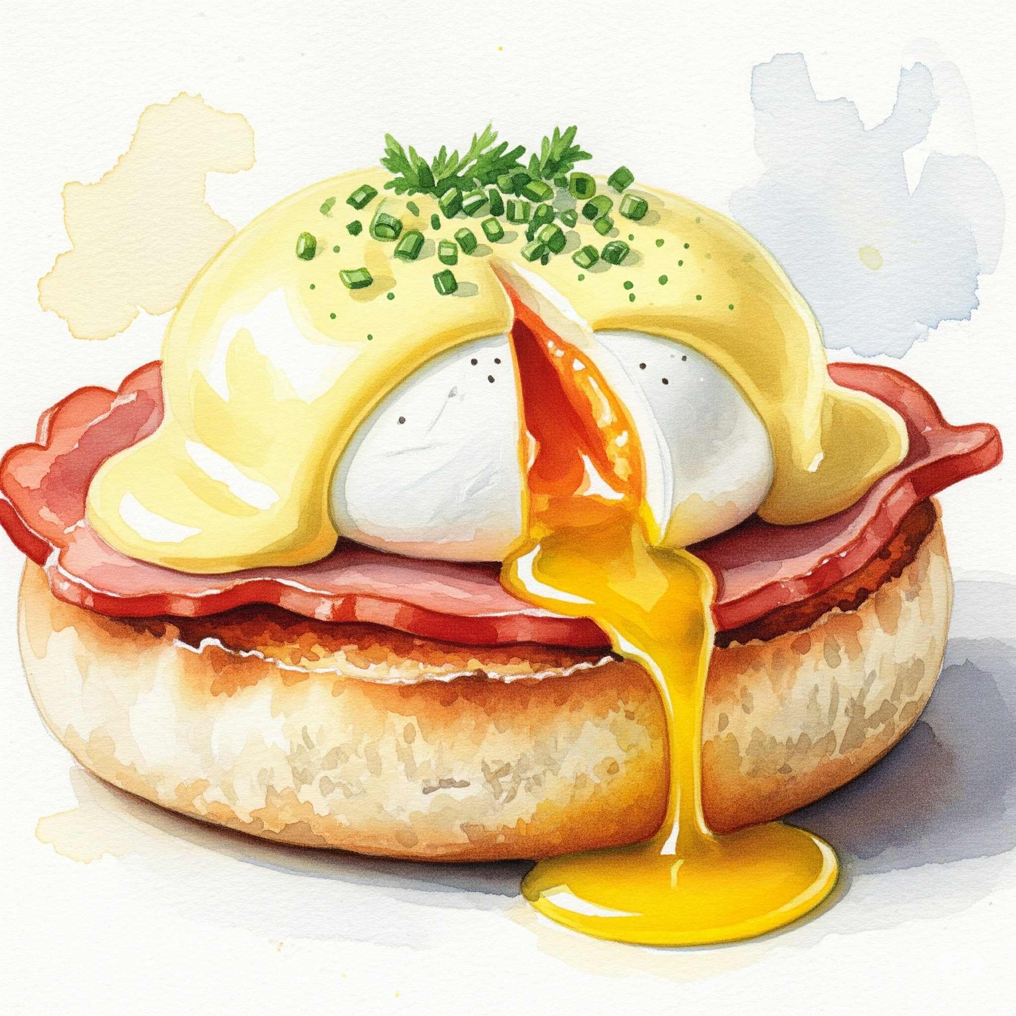 วันนี้จู่ ๆ ก็คิดถึง เมนูอาหารเช้าสุดคลาสสิกที่ประกอบด้วยไข่ดาวน้ำ (Poached Egg) วางบนขนมปังแบบอังกฤษ (English Muffin) หรือขนมปังปิ้งกรอบ ๆ ราดด้วยซอสฮอลแลนเดส (Hollandaise Sauce) และท็อปปิ้งด้วยเบคอนแคนาเดียน (Canadian Bacon) หรือแฮม จี่ในกระทะจนหอมฟุ้ง