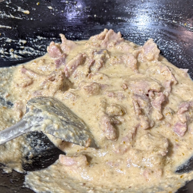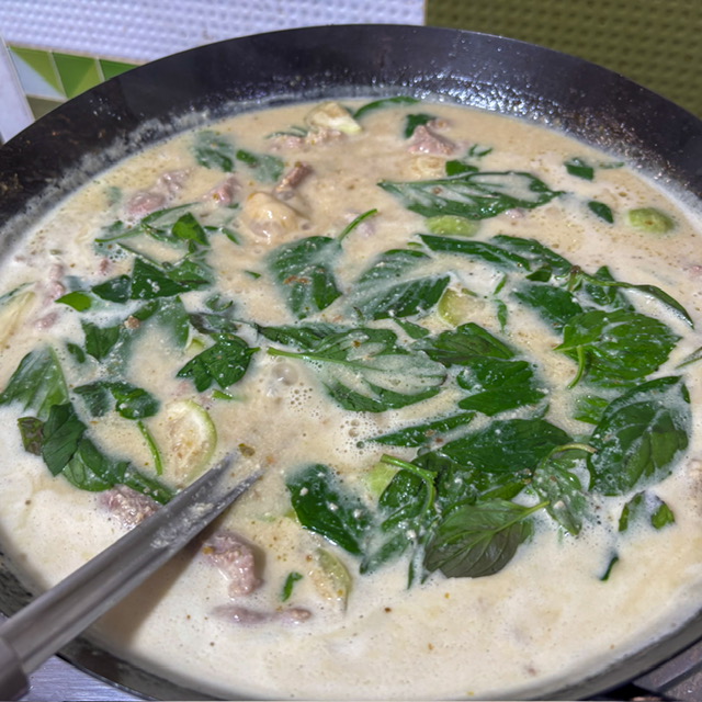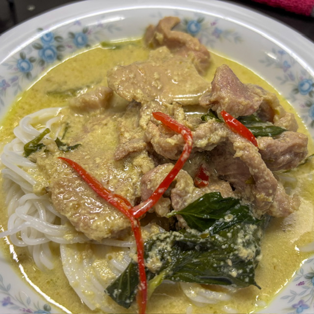 วันนี้เป็นเมนู "ขนมจีนแกงเขียวหวานไก่" คือเอาจริงๆ เมนูประเภทแกงๆ อะไรพวกนี้ไม่ถนัดเลย ไม่ได้เลย แต่พอดีลูกชายกับส่วนตัวผมเองก็ชอบกินขนมจีนแกงไก่จริงๆ จังๆ แต่ก็ไม่เคยคิดจะทำกินเองเลย เพราะพวกนี้มือไม่ถึงทำอร่อยลำบาก เช้าวันไปตลาดก็ตั้งใจจะทำกินกันวันแม่ก็จะทำพวกเมนูง่ายๆ ราดหน้าประมาณนั้น หมักหมูไว้ล่วงหน้าแล้ว แต่มาเปลี่ยนใจตอนเจอเส้นขนมจีน คราวนี้เลยเปลี่ยนแผนมาทำ แกงเขียวหวานหมูหมัก แทน ที่ผมไม่ทำพวกแกงเพราะทำเครื่องแกงไม่เป็น และมันเป็นศาสตร์และศิลป์ของอาหารไทยที่ยากมากมาย และมีเทคนิคมากมายเช่นกัน และวันนี้ดันเป็นหมูหมักที่ส่วนผสมของไข่ขาวด้วย เลยทำให้น้ำแกงเขียวหวานออกจะเหมือนมีอะไรด้วย