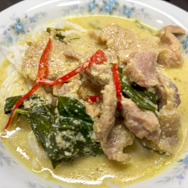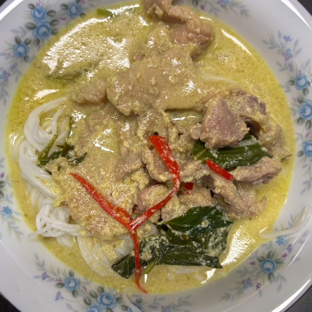 แบ่งปันเมนู "ขนมจีนแกงเขียวหวานหมูหมัก" ไม่ค่อยถนัด แต่ลูกชอบกินมาก เลยต้องพยายาม