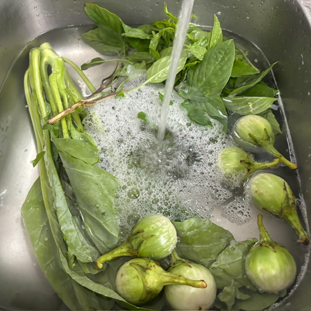 ล้างผักให้เรียบร้อย มีคะน้า ก็ทำราดหน้าสักนิดหน่อย