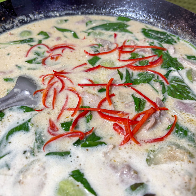 ปล. ยอมรับว่าผมอยากได้ที่เป็นแบบหน้ามันๆ เขียวๆ แต่ก็ไม่รู้ทำยังไง ท่านใดพอแนะนำ บอกเคล็ดลับให้ด้วยนะครับ ผมจะยังคงอยู่กับการทำแกงพวกนี้อีกสัก สองวีค มันคาใจ มันไม่ได้ดั่งใจ