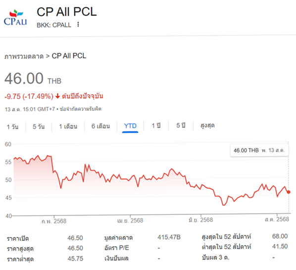 CPALL เปิดผลประกอบการ Q2/2568 ทำกำไรสุทธิ 6,768 ล้านบาท