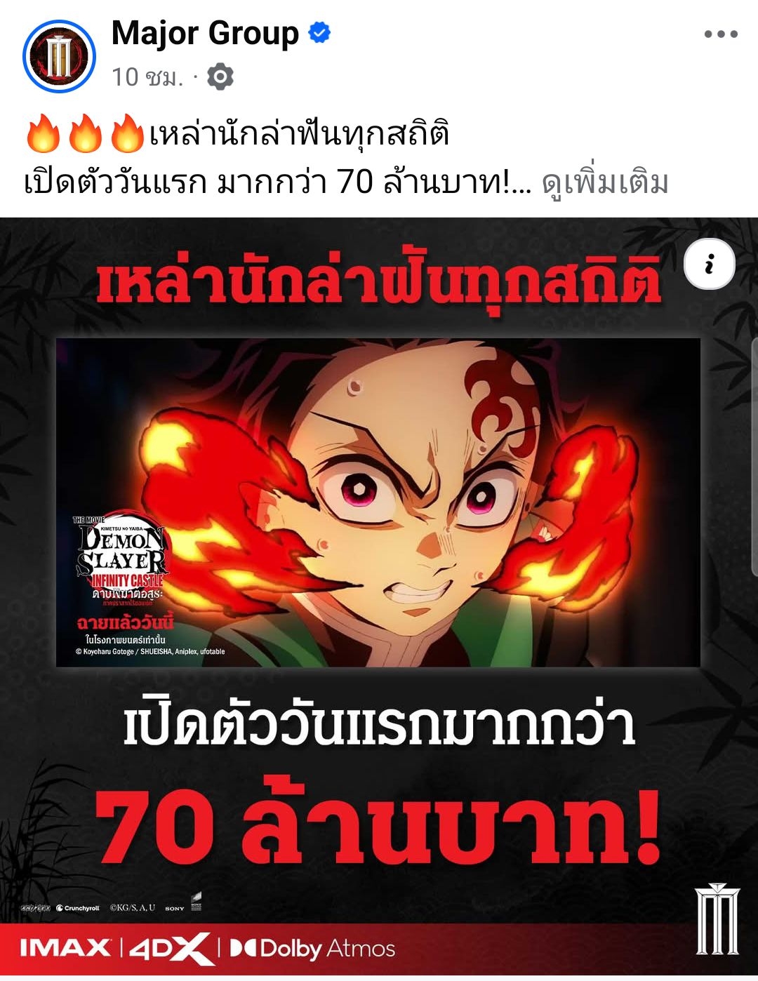 🎉🎉🎉 #ดาบพิฆาตอสูร #ปราสาทไร้ขอบเขต เปิดตัววันแรกในประเทศไทย 70.4 ล้านบาท