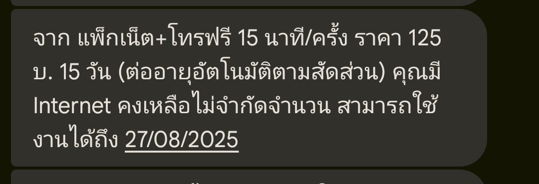 ปกติพอถึงรอบผมจะเติมเงินเข้าไว้ในเครื่องแล้วถึงเวลาเน็ตหมดมันจะหักค่าเน็ตให้อัตโนมัติ พอรอบนี้ไม่หักแล้วเปลี่ยนแพคเกจให้ผมซึ่งก็หักตังค์ผม ปกติที่ผมใช้ถ้าผมเติมไม่เต็มจำนวนก็จะหักให้ไปก่อน35,75ก็ว่ากั