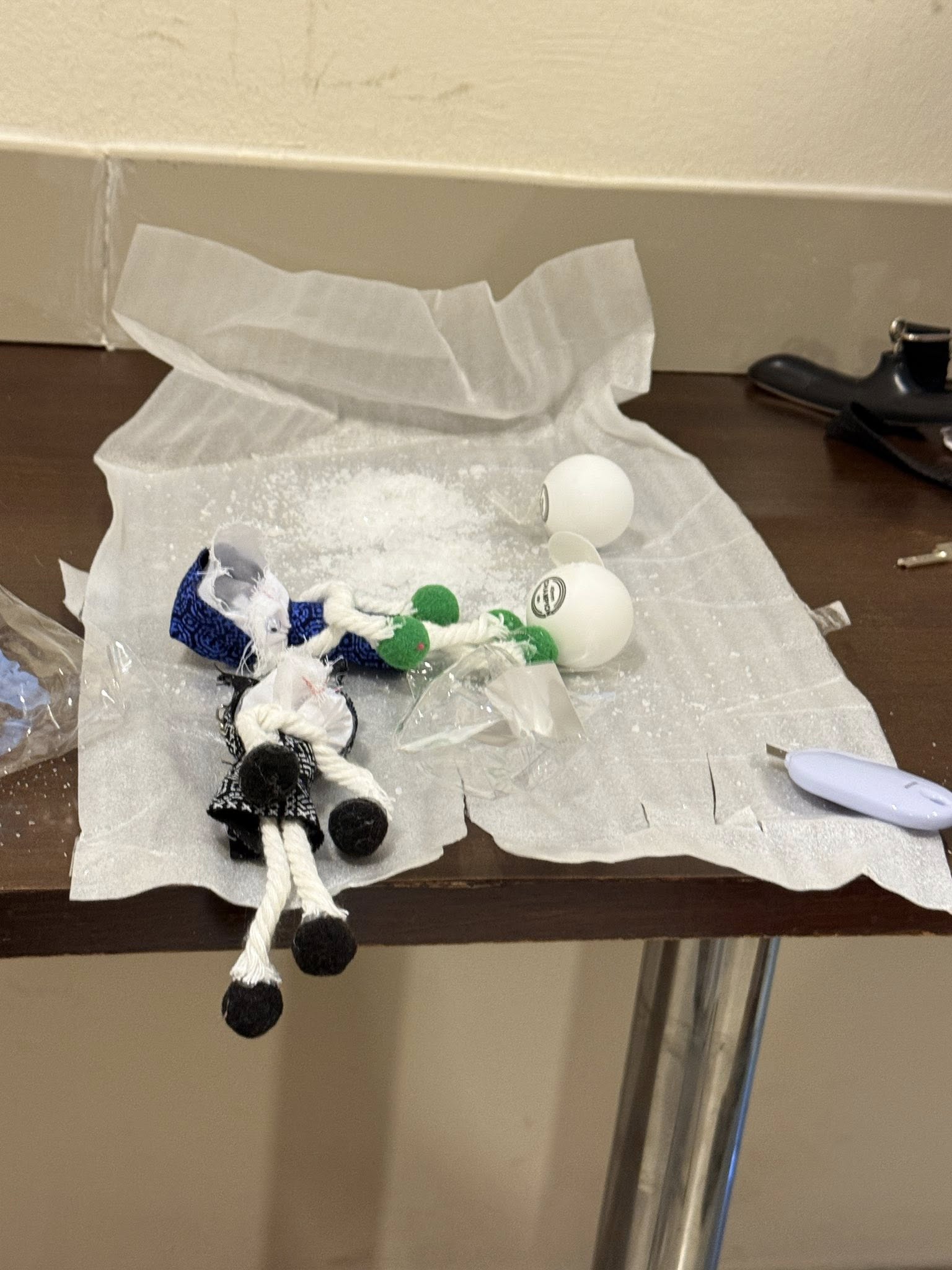 เมื่อผู้โพสต์เดินทางมาถึงไทยในวันที่ 30 ก.ค. และนำของมาจัดกระเป๋าเตรียมบินกลับในวันที่ 3 ส.ค. ก็เริ่มรู้สึกถึงลางสังหรณ์ไม่ดีเกี่ยวกับตุ๊กตาเหล่านี้ ด้วยความกังวลจนนอนไม่หลับ จึงโทร.ปรึกษาแม่ ซึ่งแม่ก็ได้คะยั้นคะยอให้แกะของตรวจสอบ ผู้โพสต์จึงตัดสินใจแกะตุ๊กตาออกมาดู 1 ตัว และพบว่าบริเวณหัวตุ๊กตามีลักษณะผิดปกติ คล้ายลูกปิงปองมีรูและมีเทปปิดไว้ เมื่อเทออกมาก็ต้องตกใจสุดขีดเพราะสิ่งที่เห็นคือ "ไอซ์" จำนวนมาก