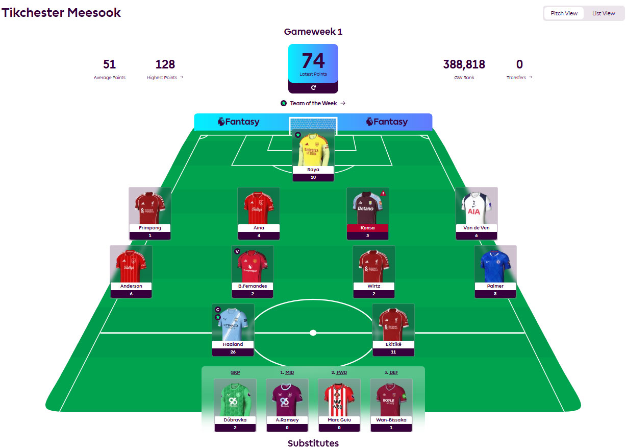FPL (Fantasy Premier League) วีคแรกผ่านไป ได้คะแนนดีกันไหมคะ