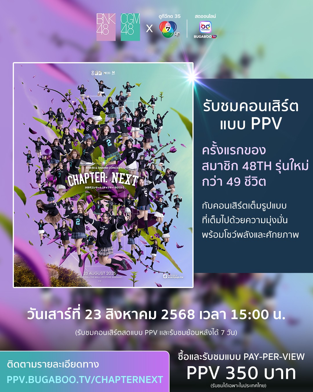 เปิดขายบัตร PPV แล้ววันนี้ ! 🎉 คอนเสิร์ต "BNK48 & CGM48 CONCERT CHAPTER: NEXT" ครั้งแรกของสมาชิก 48TH รุ่นใหม่ กว่า 49 ชีวิต กับคอนเสิร์ตเต็มรูปแบบ ที่เต็มไปด้วยความมุ่งมั่น พร้อมโชว์พ