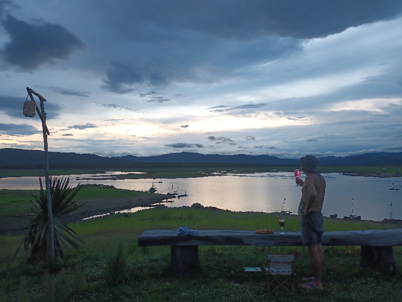 กลับมาที่เต็นท์ ฟ้าเริ่มมืด นั่งเตรียมมื้อเย็นเบาๆ รองท้อง แล้วยกออกมานั่งทำทรงตรงเสาไฟ พอเริ่มถ่ายรูป ฝนเริ่มลงเม็ด แล้วเบา ยกไปนั่งทำทรงตรงริมอ่างอีกที เพราะเห็นน้ำชัดเจน ฝนเริ่มลงเม็ดอีก ถ่ายรูปเสร็จค่อยยกกลับมาที่เต็นท์ครับ