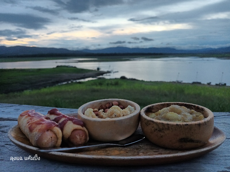 นั่งกินพร้อมมองวิวอ่างเก็บน้ำ แม้จะไม่อยู่ติดริมน้ำ แต่ได้เห็นวิวกว้างๆ แล้ว รู้สึกดีต่อใจ และแม้กับข้าวจะธรรมดา แค่นี้ก็อร่อย และมีความสุขแล้วครับ ออ มีแมลงวันบ้างครับ