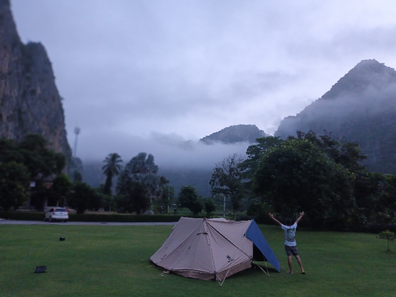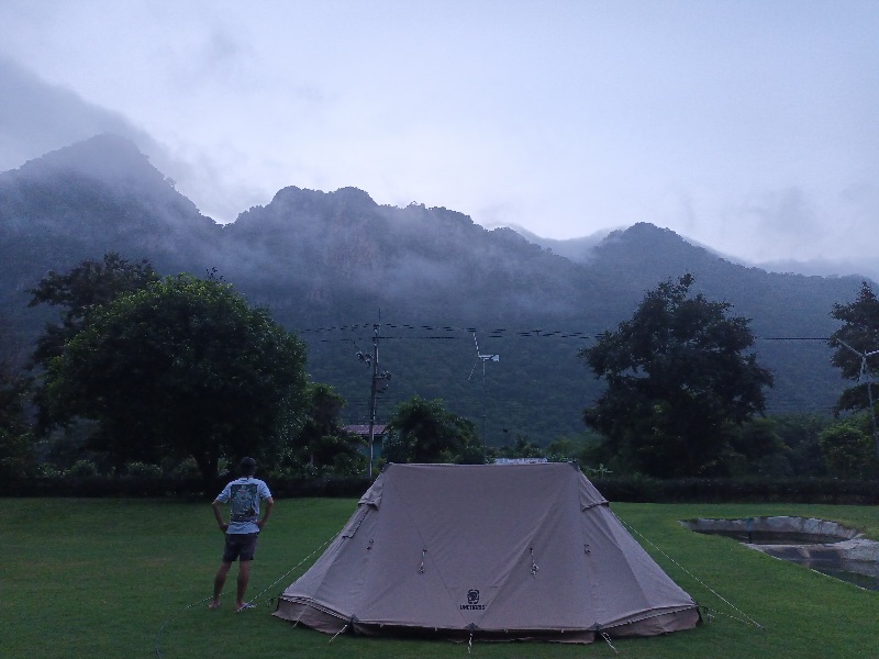 ฟ้ามืด อาจมีฝนตกอีกรอบ อากาศดีมาก ในเต็นท์น่าจะเปิดเบาๆ ไม่นาน