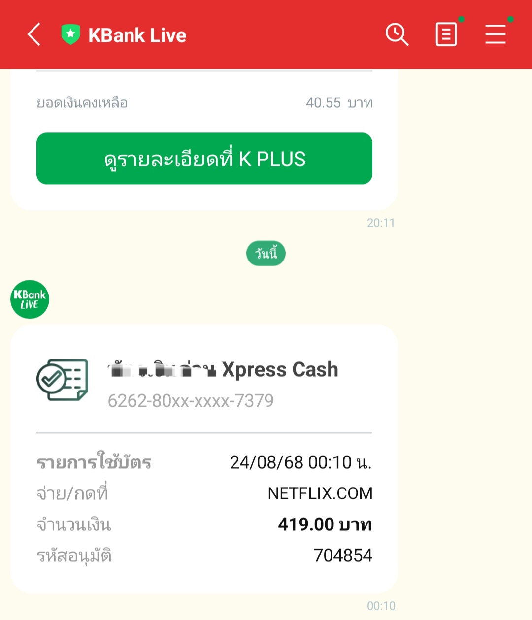 ปกติจะตัดผ่าน visa เลขลงท้าย 7272 เท่านั้น ไม่เคยตัดผ่านบัตรอื่นและบัตรที่ตัดไม่เคยผูกกับแอพอะไรนอกจาก agoda แต่วันนี้มีแจ้งเตือนตัดเงินค่าNetflix 419 บาท.