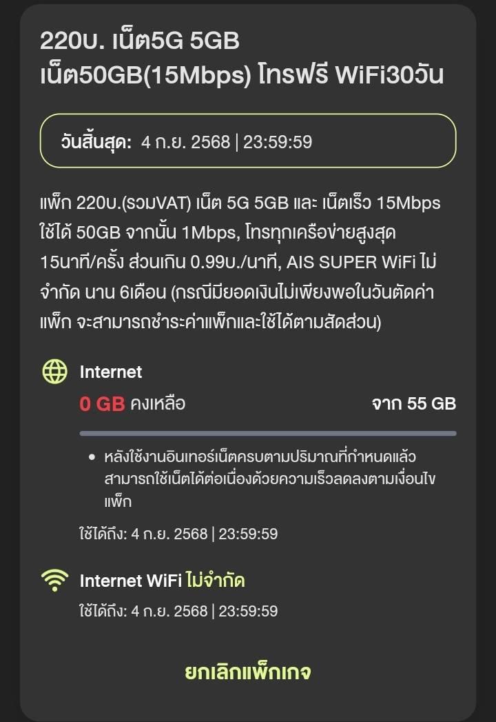 ยกเลิกแพ็คเกจเสริม aisไม่ได้
