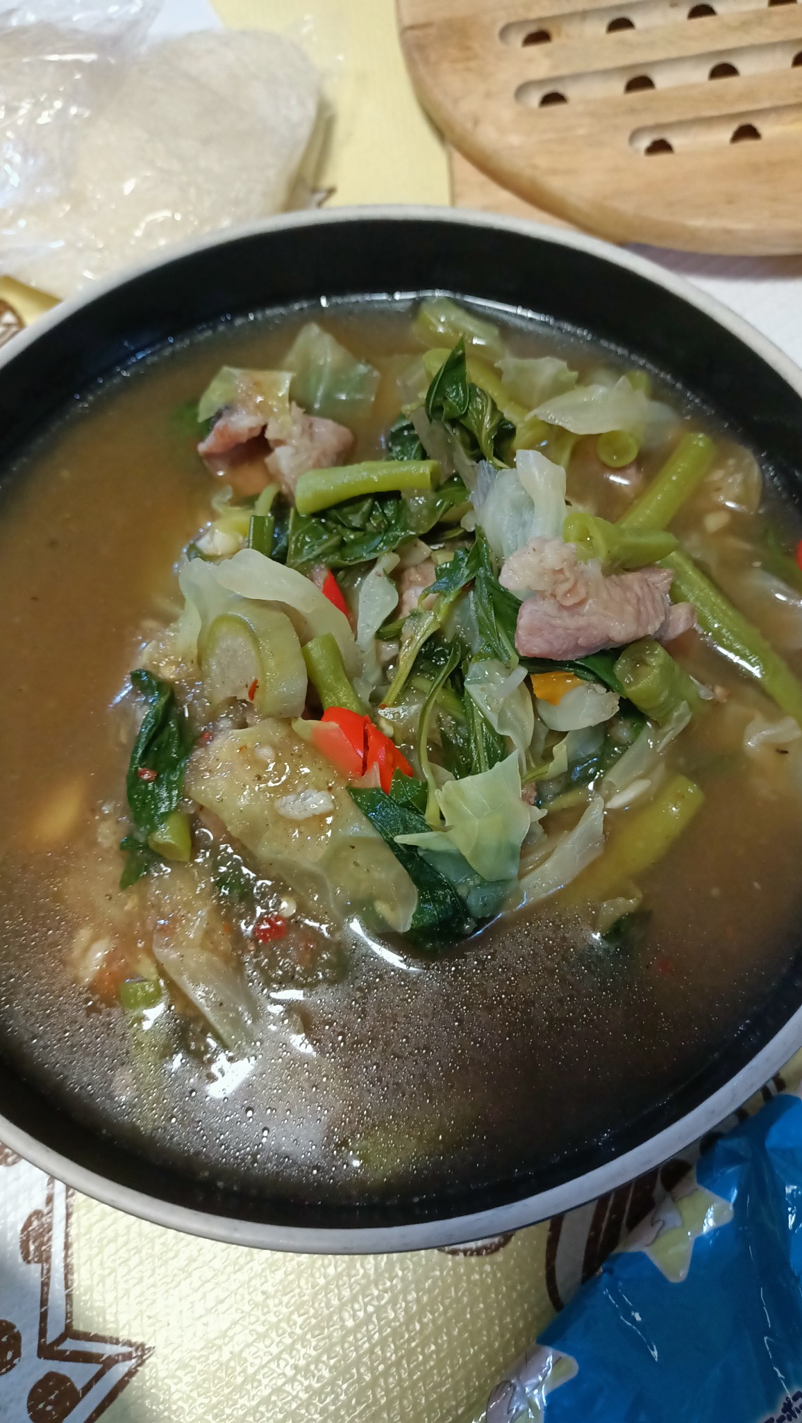 วันโกน วันพระเวียนมา ก็เป็นอันว่างดเนื้อสัตว์ อาทิตย์ละ 2 วัน พระนี้อยากกินอะไรร้อนๆ เลยทำอ่อมเจกินค่ะ ผักบางอย่างได้มาจาก กระถางหน้าบ้านที่ปลูกๆทิ้งไว้ แบบชุมชนแออัด คือพื้นดินไม่มี เลยปลูกรวมๆกันไปใ