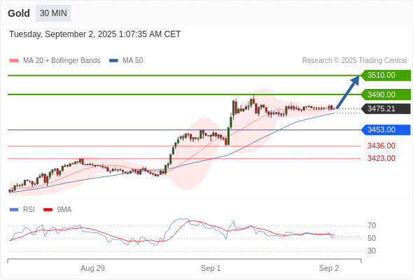 แนวทางการเทรด: หากราคาสูงกว่า 3453 มีโอกาสที่ราคาจะขึ้นไปที่ 3490 และ 3510