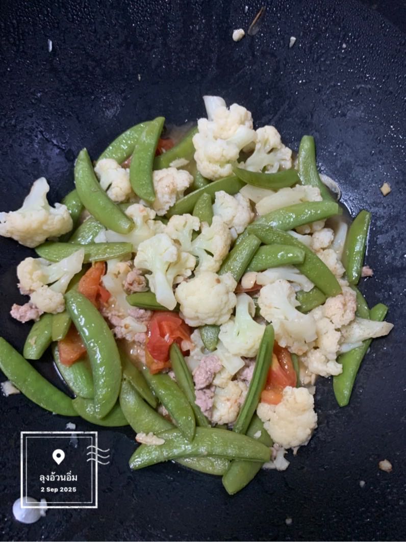 มีผัดผักรวมใส่หมูสับอีกอย่าง เน้นผัก