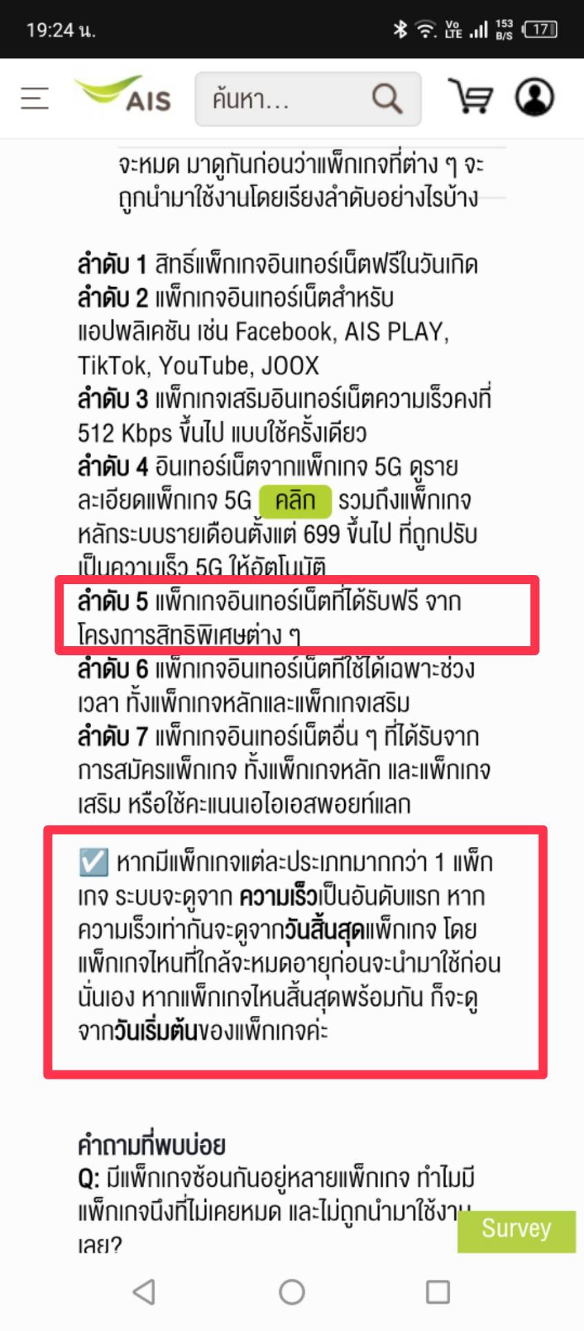 -ถ้าหักแพ็คเกจหลักก่อนเท่ากับว่า แพ็คเกตเสริมจะเสียเงินฟรีใช้ได้แค่3-4วัน จากควรจะใช้ได้15วัน และมีเน็ตคงเหลือเท่าไรก็ไม่ได้ใช้งานหลังจากวันที่ตัดรอบเน็ตหลัก