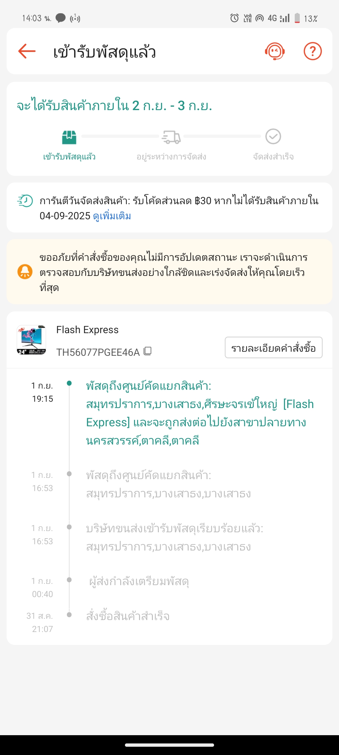 สินค้าไปค้างอยู่ศูนย์คัดแยกสมุทรปราการมา3วันแล้ว