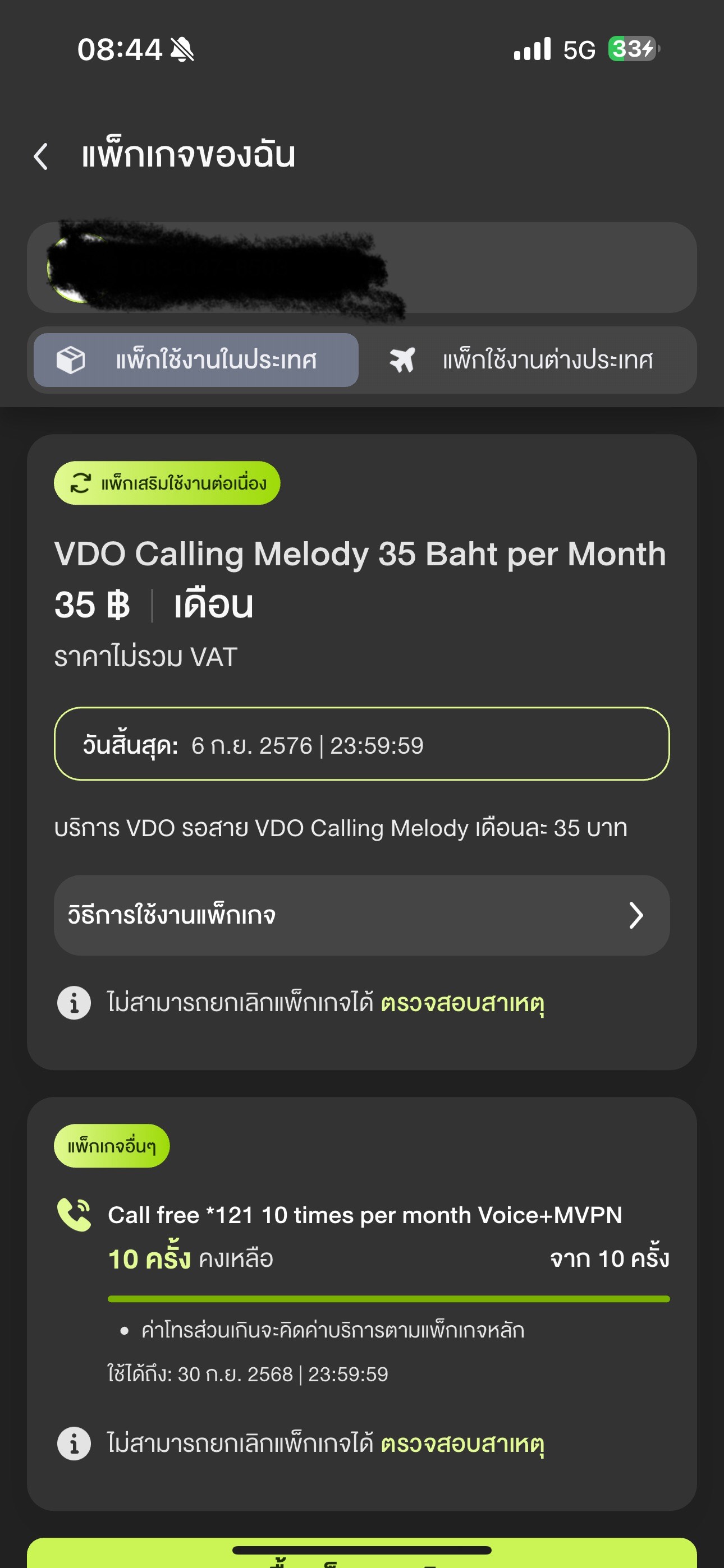 และมีการสมัครบริการที่ยกเลิกไม่ได้ คือ VDO calling Melody และ MVPN