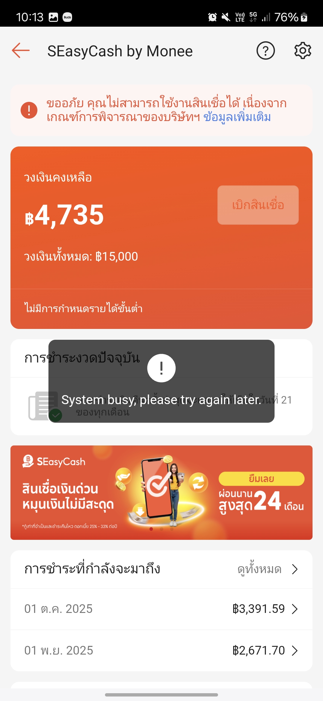 โดน shoppee SEasy money กับ Spay ระงับใช้งานชั่วคราว