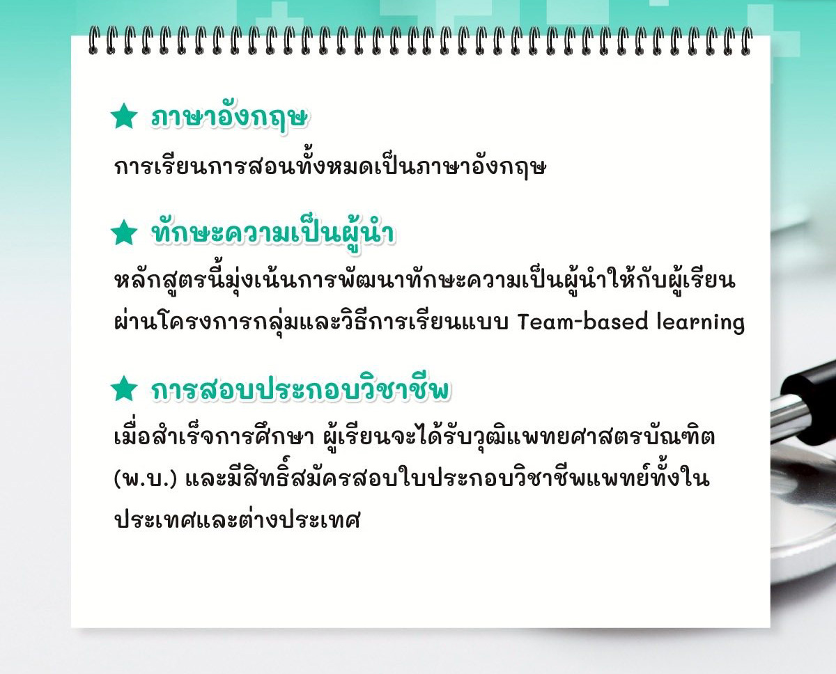 เป้าหมายคือการผลิตแพทย์ที่พร้อมทั้งความรู้ ทักษะ และการสื่อสารระดับนานาชาติ