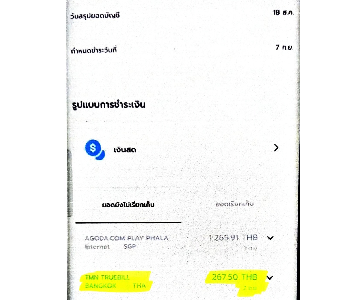 - เข้าแอพทรูวอลเล็ต ก็ไม่เจอยอดที่ทำรายการ ยอดโดนตัดจากบัตรเครดิตเอง โดยที่ไม่ขึ้นโชว์ในทรูวอลเล็ต