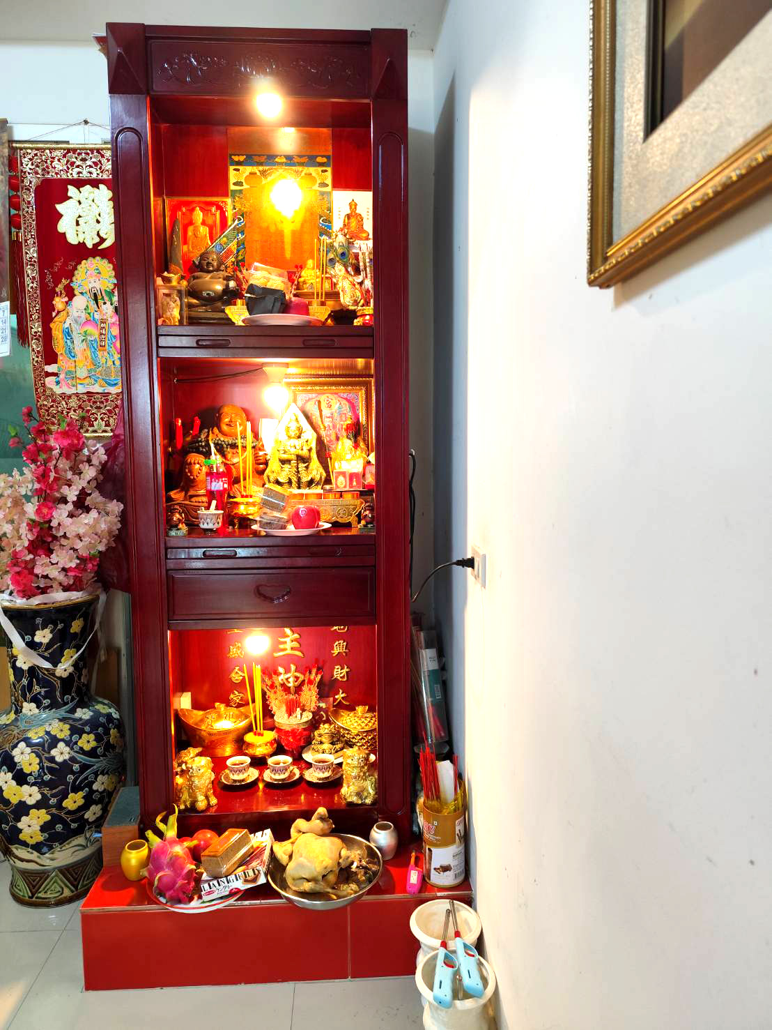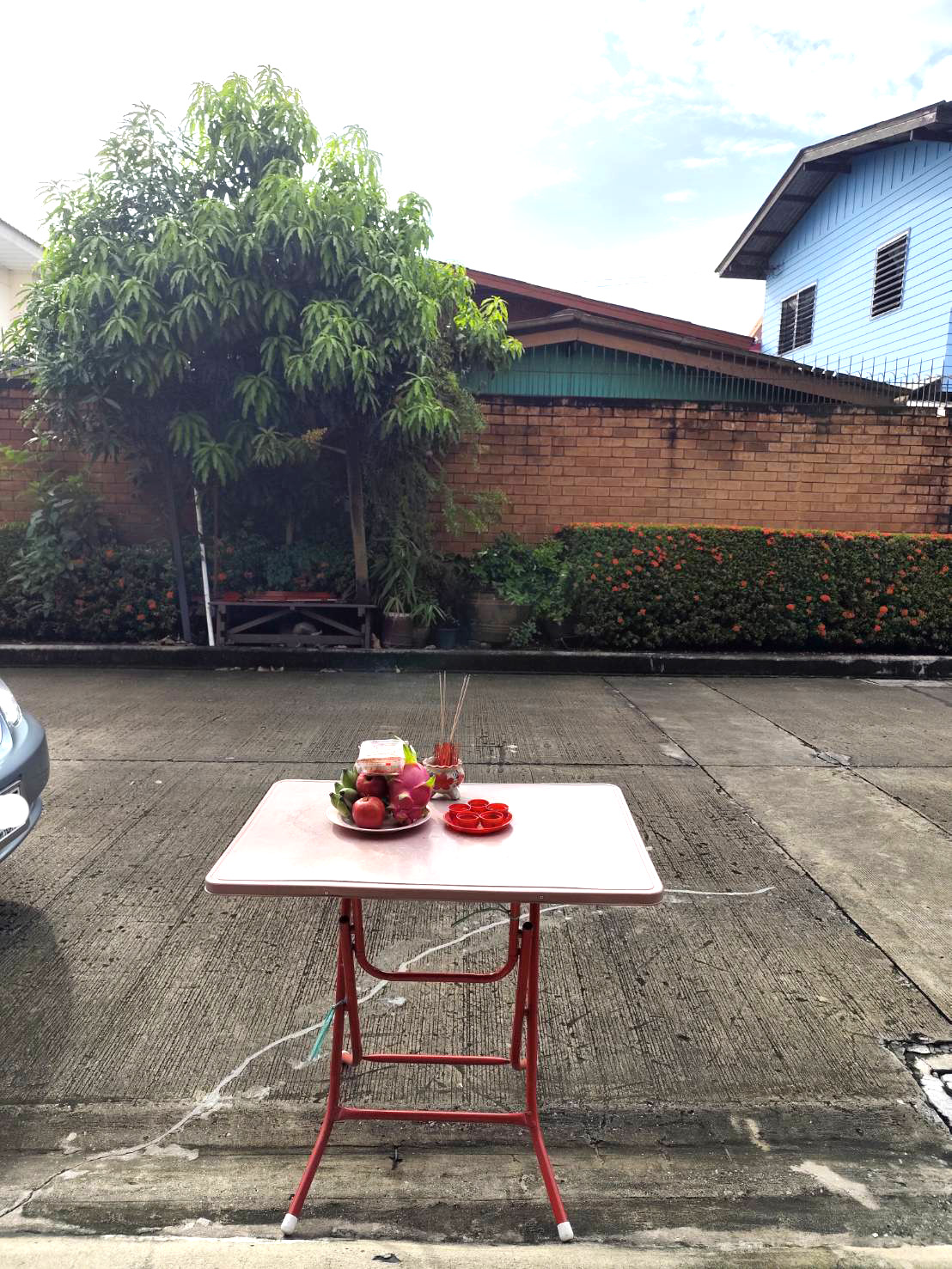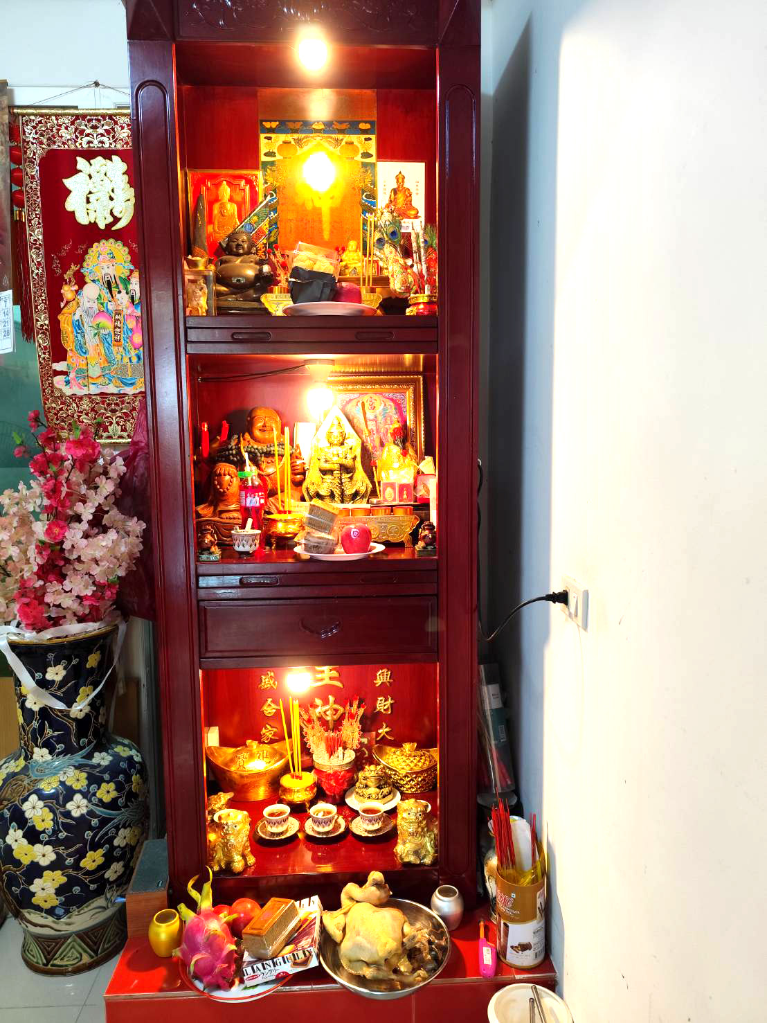 บนห้องพระ ป๊าจะไหว้เป็นผลไม้ และน้ำแดง และน้ำชา