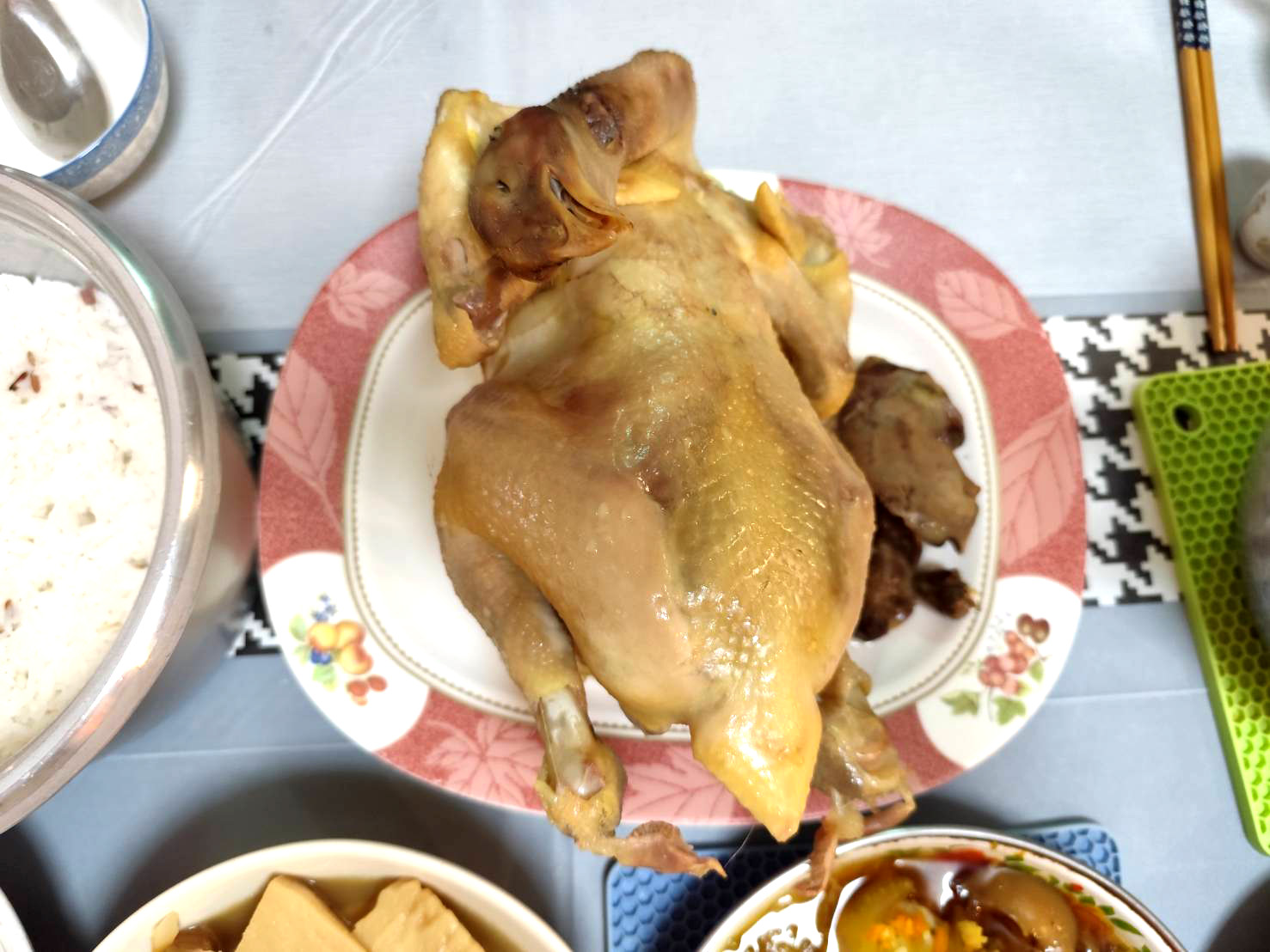 ของไหว้ที่ชั้นล่าง และไก่ 1 ตัว