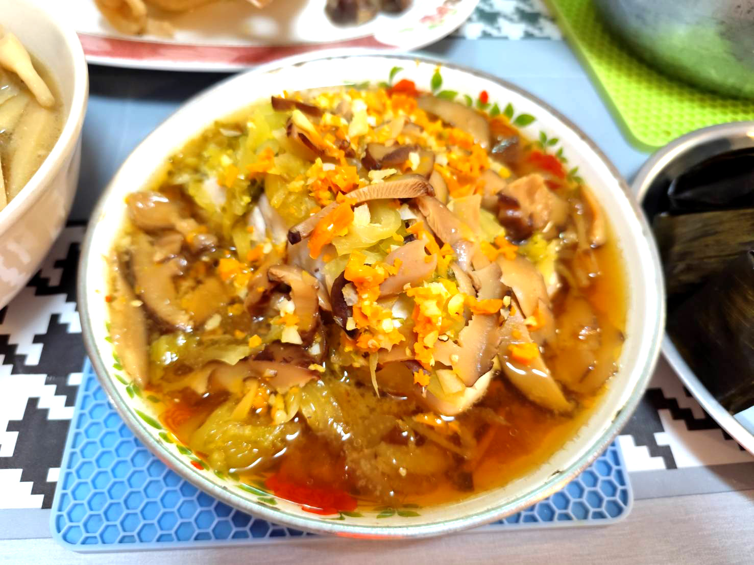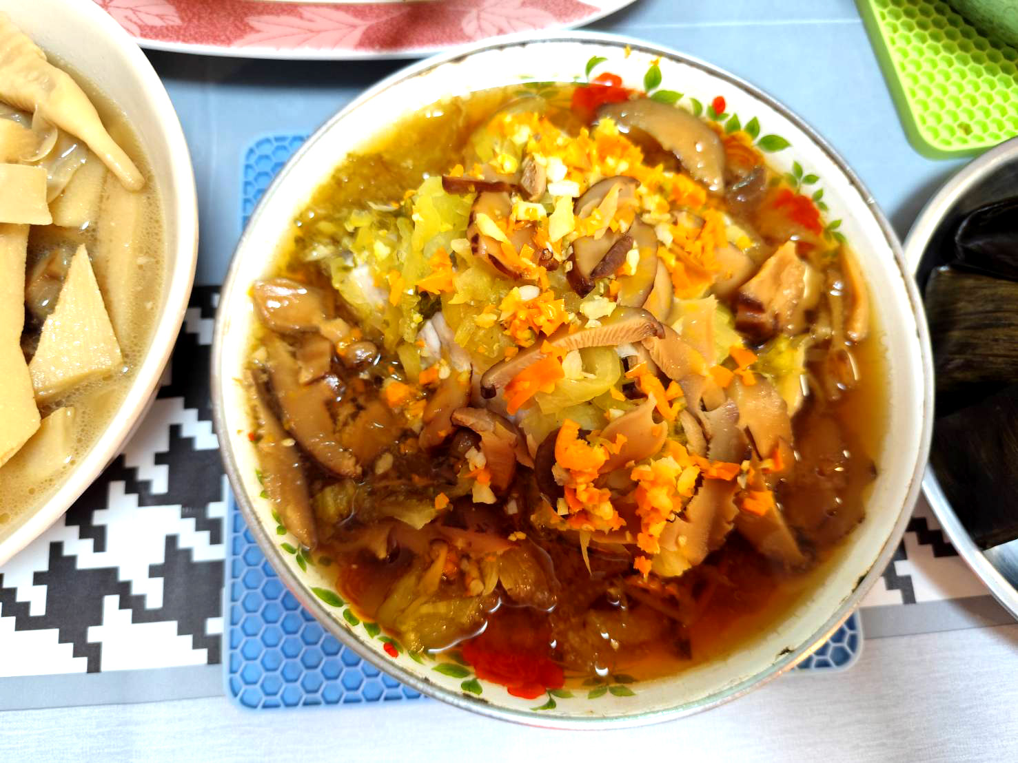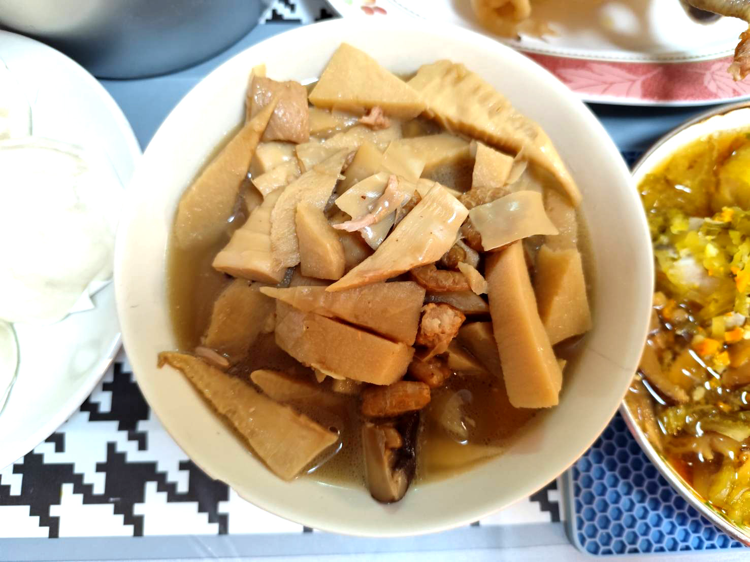 บุงซุ่ง (หน่อไม้ต้ม ใส่กระดูกหมู, กุ้งแห้ง และเห็ดหอม)