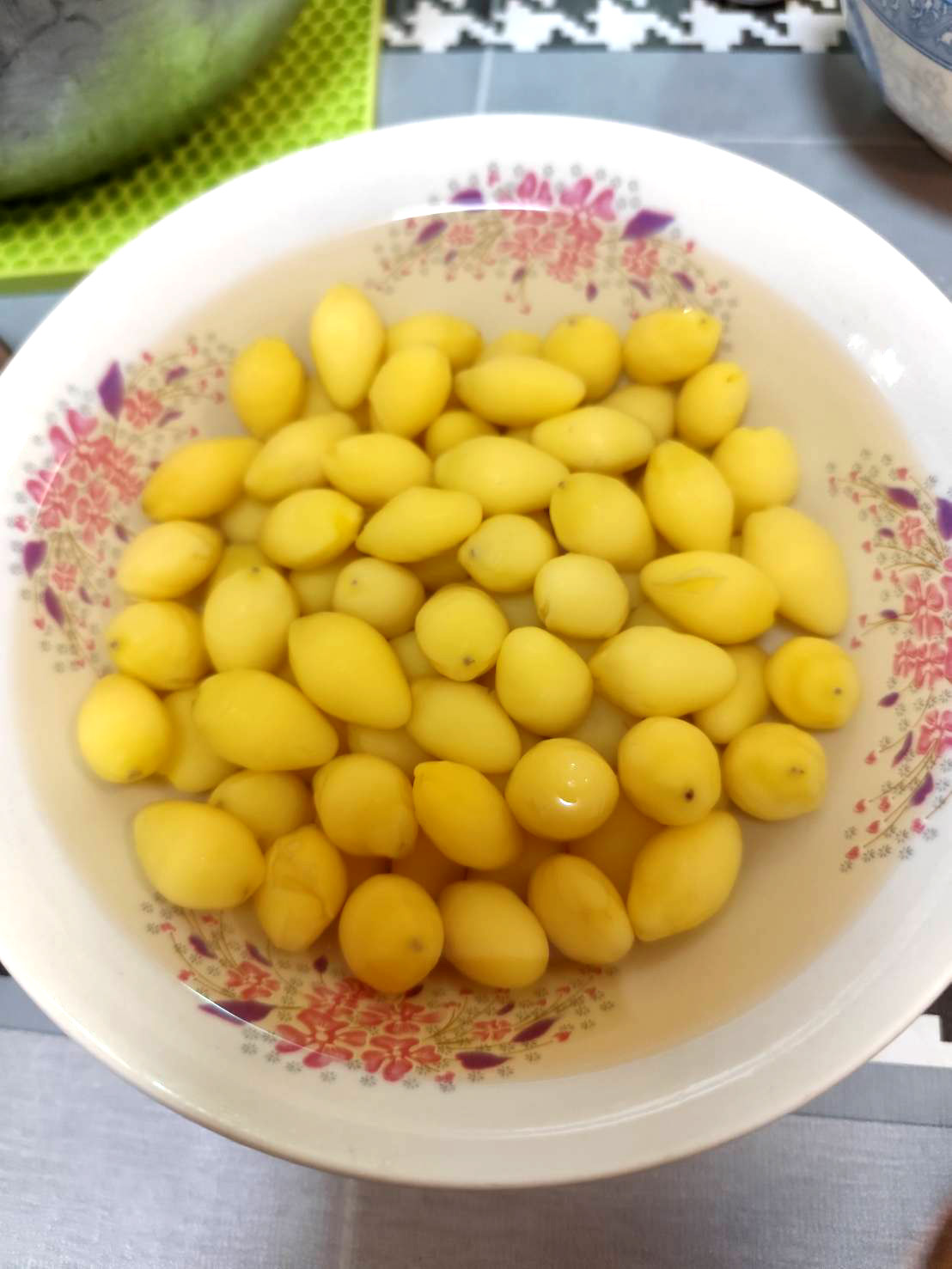 แปะก๊วย พอไหว้เสร็จแล้ว ตักแบ่งใส่น้ำแข็ง อร่อยมาก