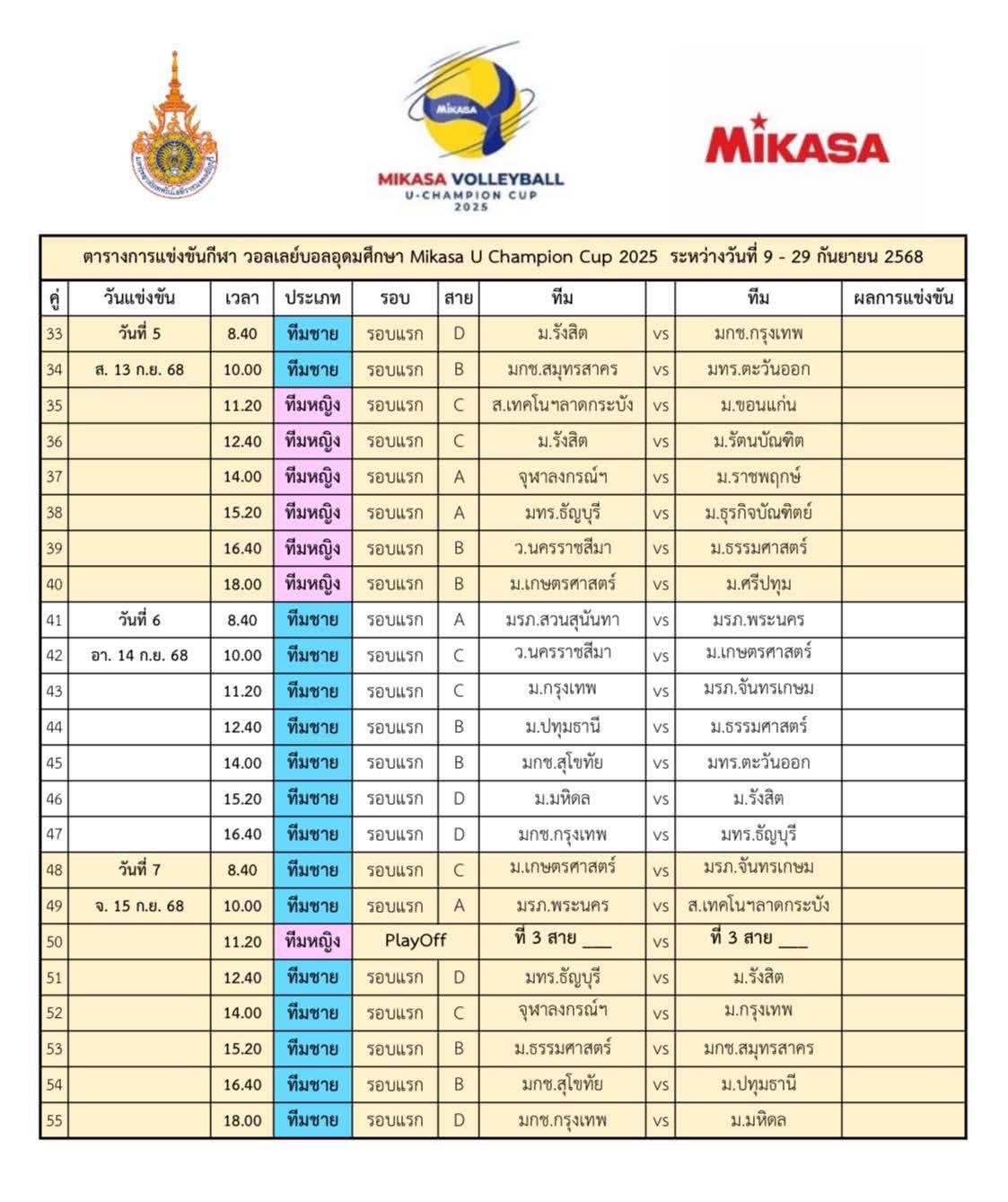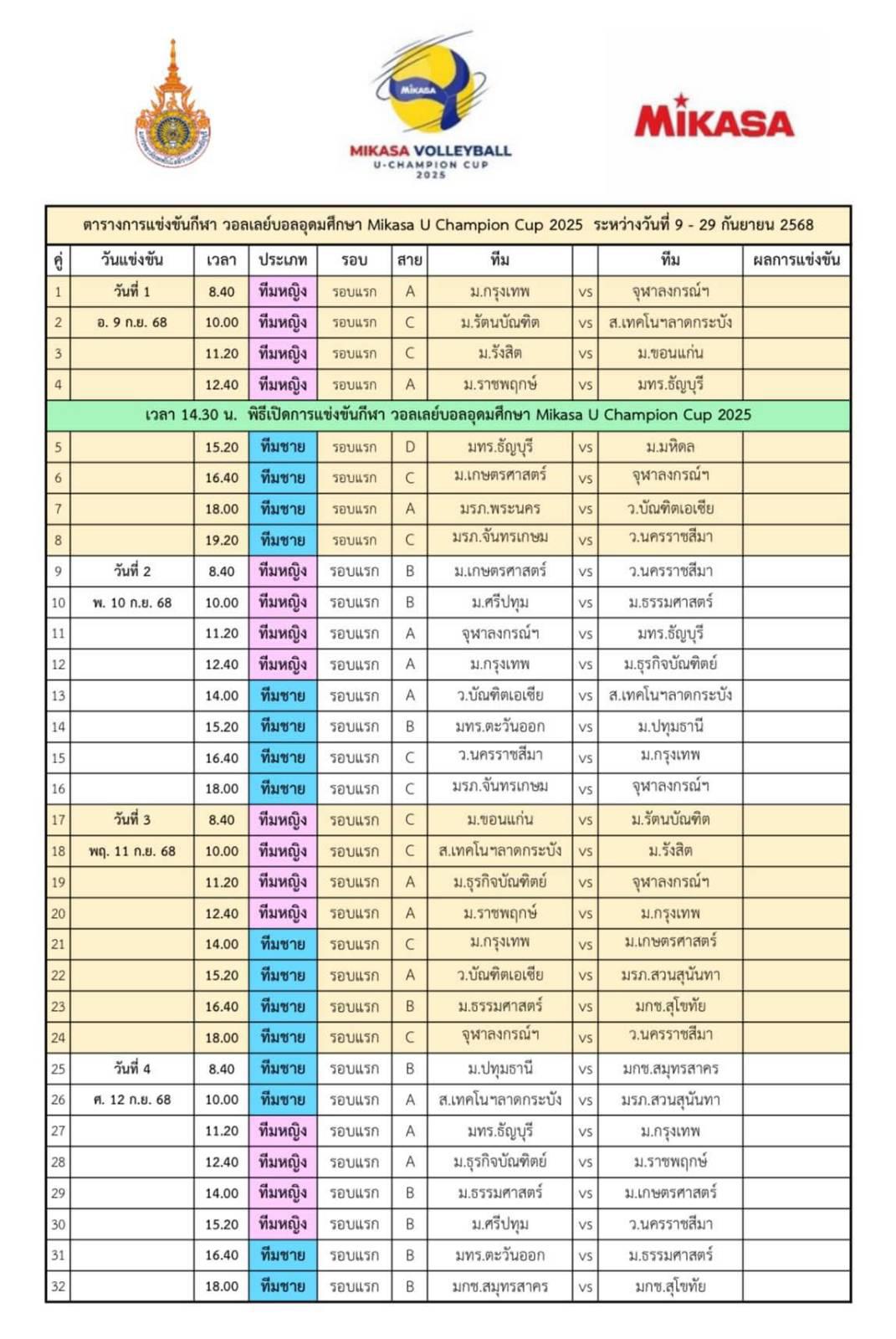 พรุ่งนี้เริ่มแล้ว Mikasa Volleyball U Champion Cup