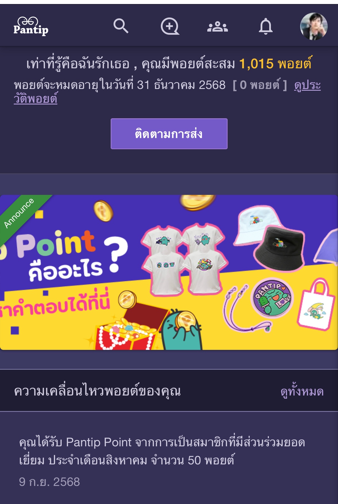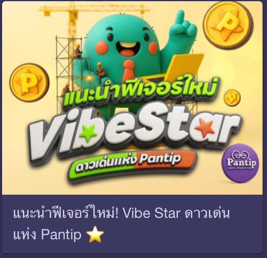 ขอขอบคุณทีมงานพันทิป ได้คัดเลือกผมเป็น Vibe Star ดาวเด่นแห่ง Pantip 🌟 และได้พอยต์ฟรี 50 พอยต์