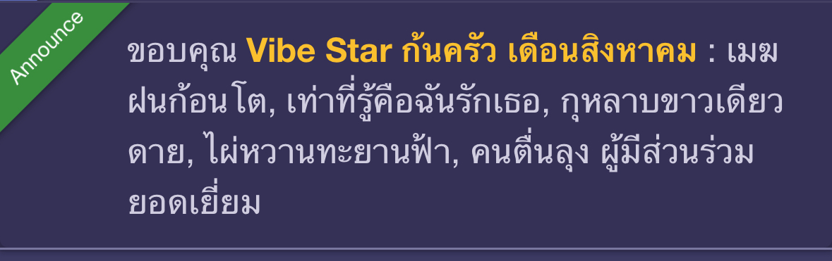 [ Vibe Star ] ได้รับพอยต์เพิ่ม 50 พอยต์