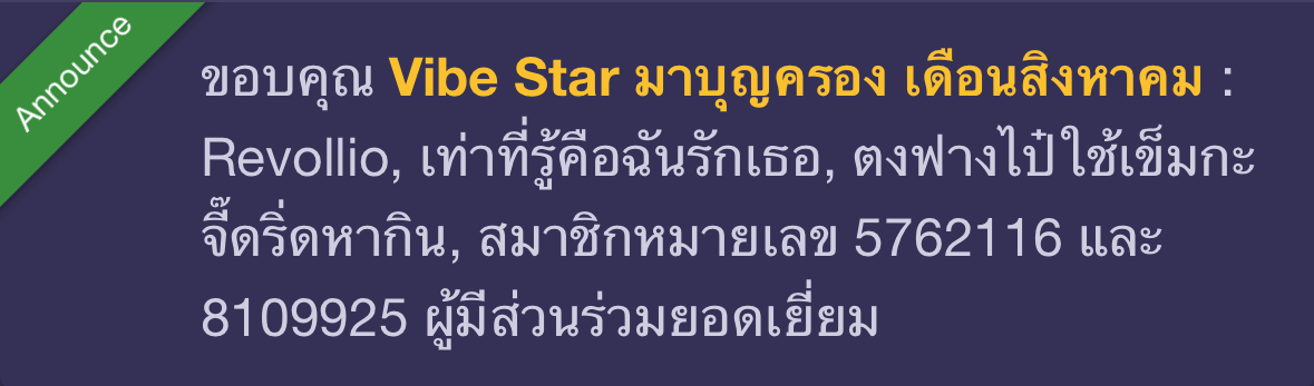 ขอขอบคุณ ทีมงานที่ได้คัดเลือก Vibe Star ดาวเด่นแห่งพันทิป 🌟ประจำเดือนสิงหาคม
