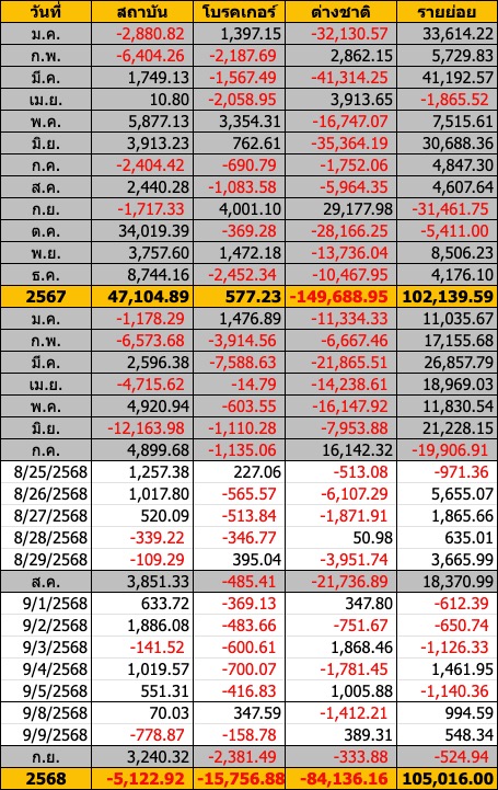 Sinthorn Summary 30/9/2568 : ต่างชาติขายสุทธิ -3,776.54 ลบ.