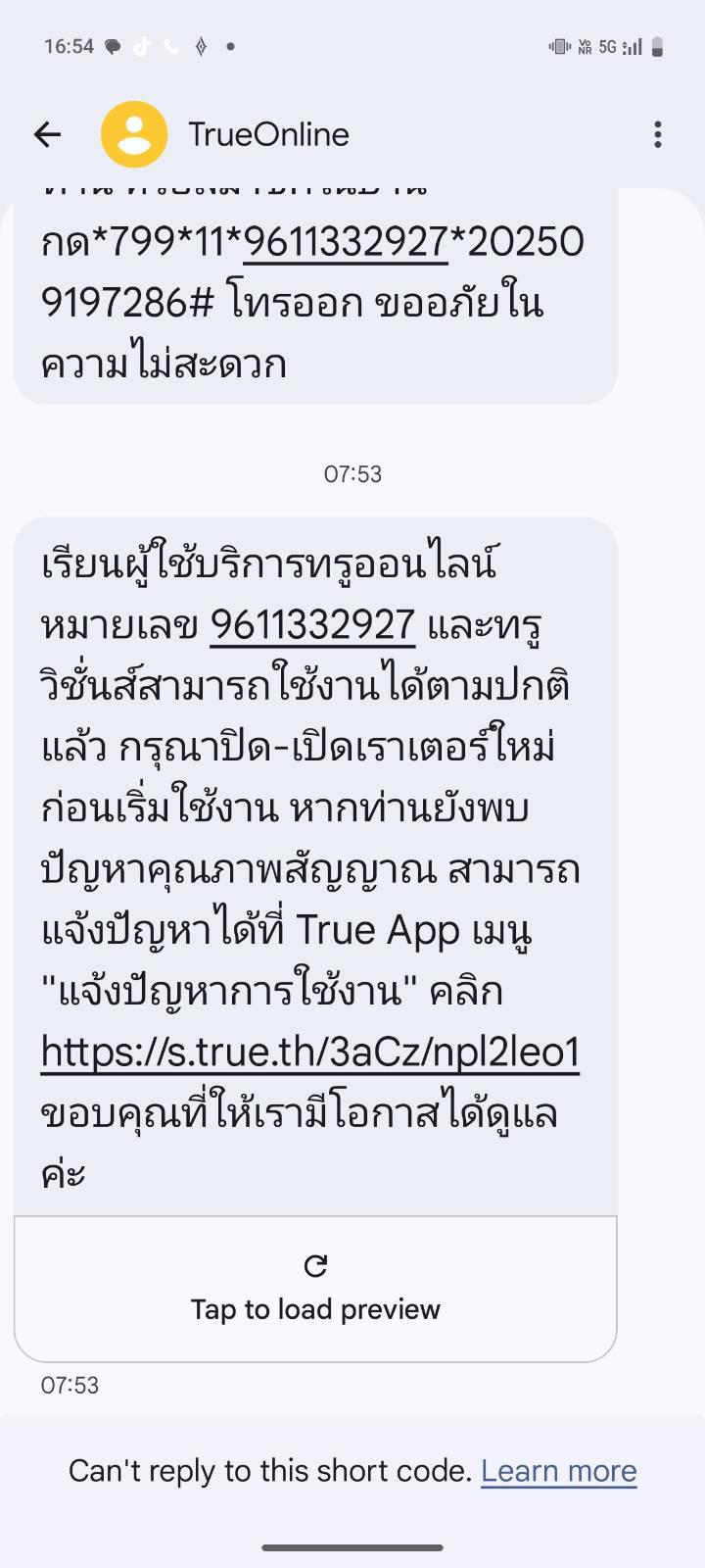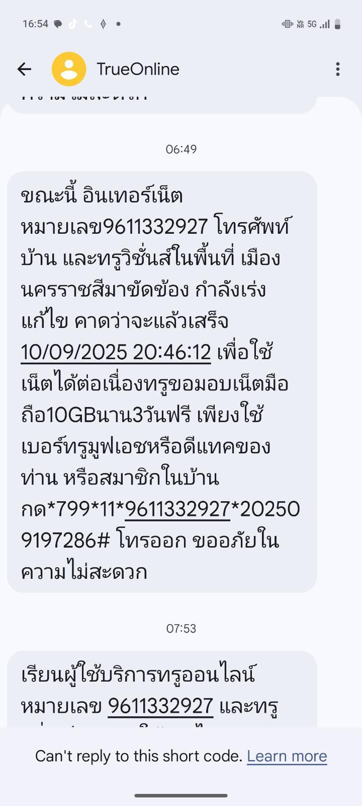 Wifiที่บ้านใช้ไม่ได้มา2วันแล้วก็มีข้อความsmsบอกว่าจะสามารถใช้ได้วันนี้ตอน9.30ของวันนี้ สุดท้ายก็ยังใช้ไม่ได้เหมือนเดิมครับพยายามติดต่อทรูก็ยากเหลือเกิน
