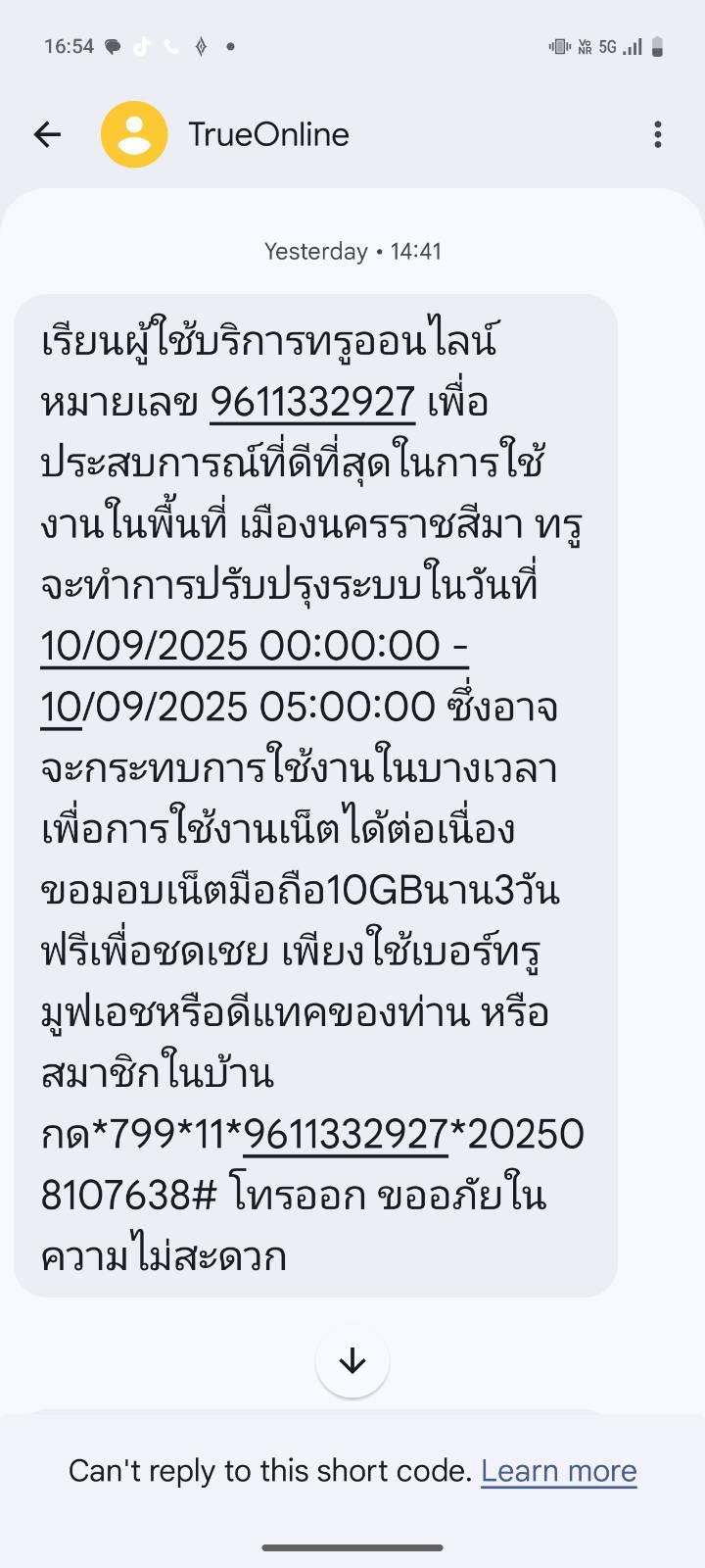 เนื่องจากได้รับ message จาก true มาอย่างต่อเนื่องว่าจะมีการแก้ไขระบบเสร็จแล้วก็มี message มาประมาณ 7 โมงเช้าว่าระบบสามารถใช้ได้แล้วแต่ถึงเวลานี้ณปัจจุบันตอนที่โพสต์คือ 16: 54 น. ก็ยังไม่สามารถใช้งานได้ที่ router ยังขึ้นไฟแดงอยู่ติดต่อก็ติดต่อไม่ได้จะทำยังไงได้บ้างครับเพราะอาชีพของผมคือไลฟ์สดขายของอย่างนี้ผมต้องไปเติมเงินซื้ออินเตอร์เน็ตมาไลฟ์ทำให้ผมเสียหายอย่างนี้ทรูจะรับผิดชอบยังไงได้บ้าง