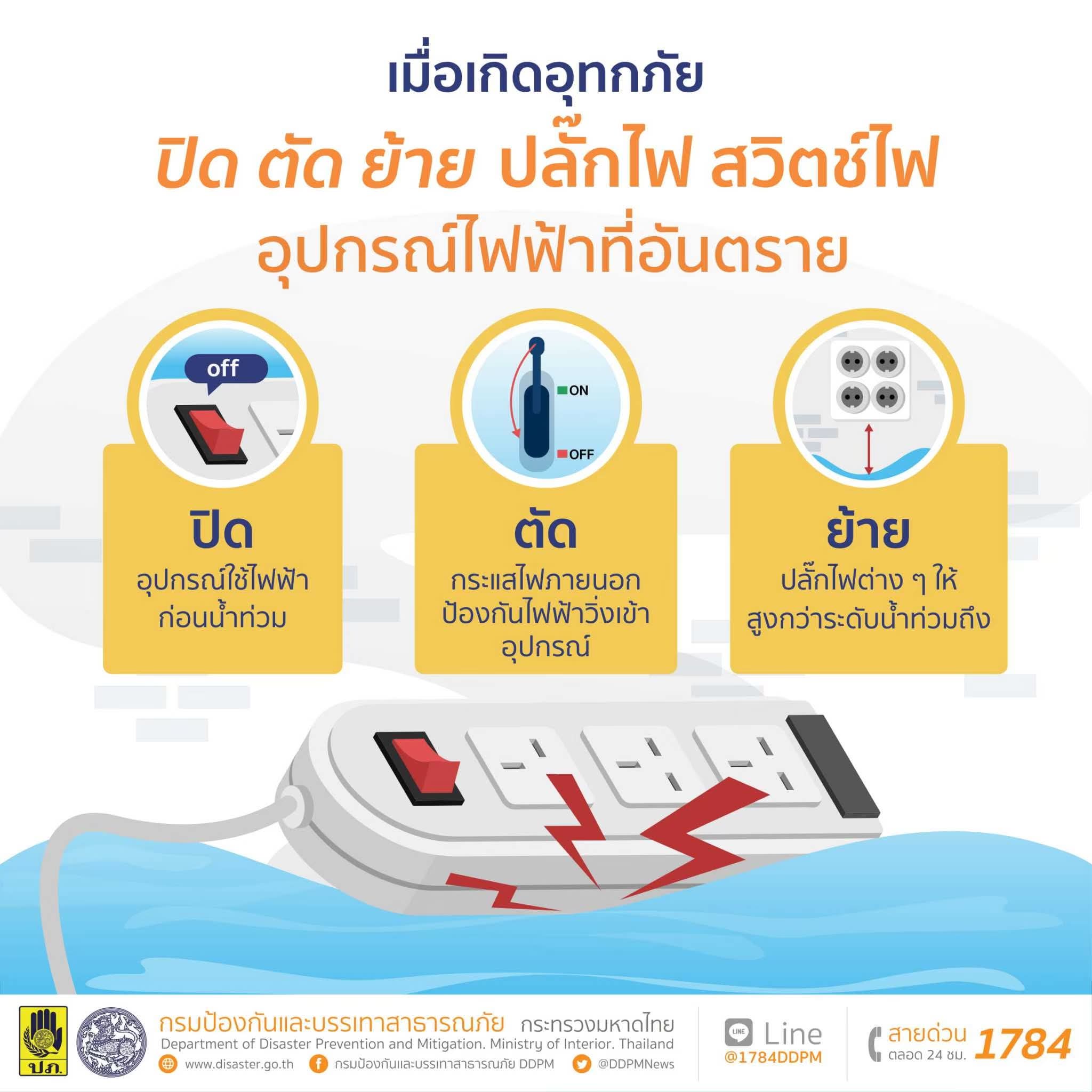🌊🔌ปภ.แนะการป้องกันอันตรายจากอุปกรณ์ไฟฟ้า เมื่อเกิดน้ำท่วมบ้านเรือน