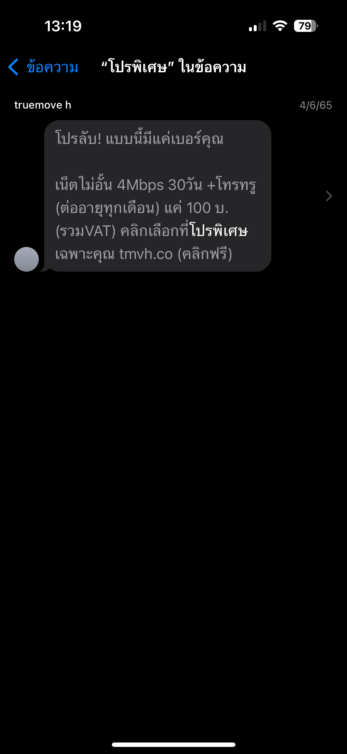 คือเมื่อวาน (12 ส.ค. 68) ดันไปกดสมัครแพ็กเกจเสริมไปโดยไม่ได้ตั้งใจ สรุปข้อความใน sms เด้งมาว่า : “แพ็กเกจ เน็ตเต็มสปีดไม่จำกัด 30วัน 399บาท เริ่มใช้งานได้ตั้งแต่วันที่ 11/09/2025 เวลา