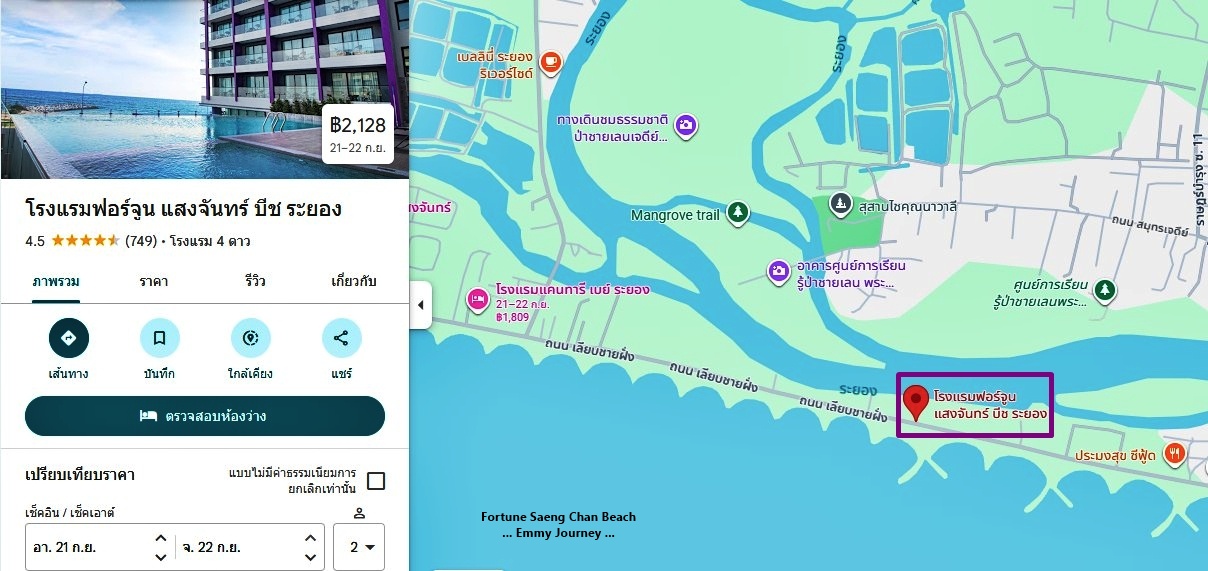 [CR] โรงแรมฟอร์จูน แสงจันทร์ บีช @ ถนนเลียบชายฝั่ง ตำบลปากน้ำ จังหวัดระยอง