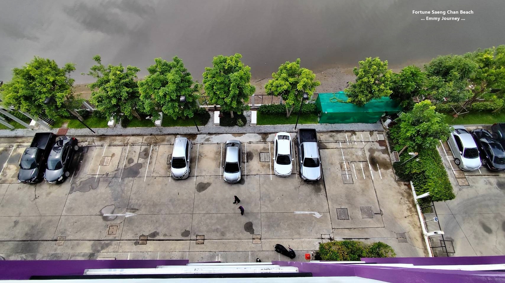 ด้านล่างเป็นลานจอดรถหลังโรงแรม