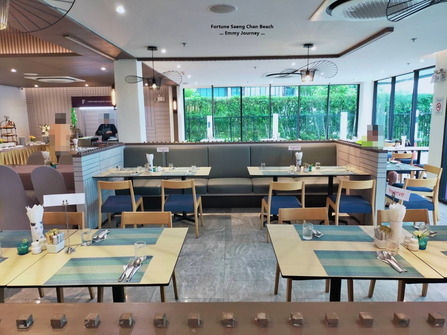 มุมนี้คือห้องอาหารเช้า มีที่นั่งทั้งโซนด้านนอกและที่นั่งในห้องแอร์
