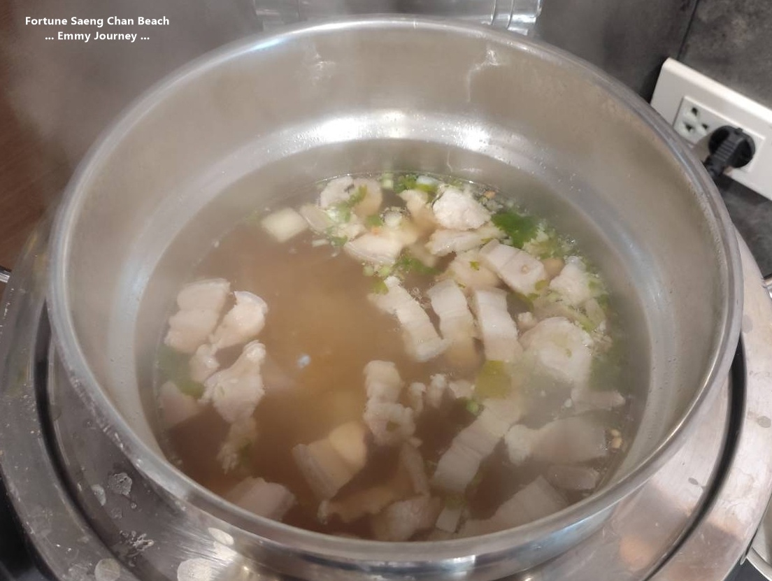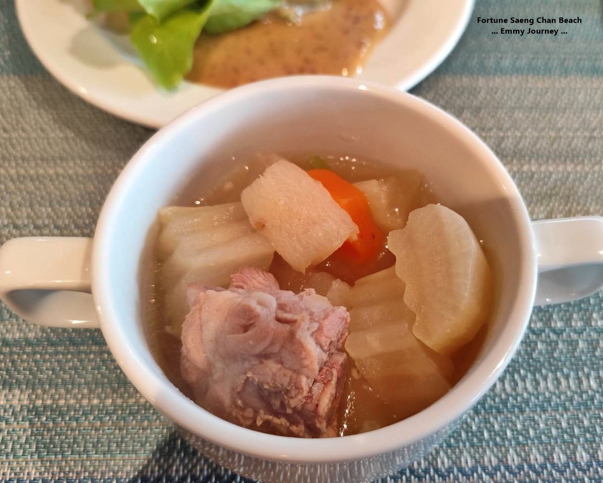 ต้มจืดหัวไชเท้าใส่แครอทใส่หมูสามชั้น