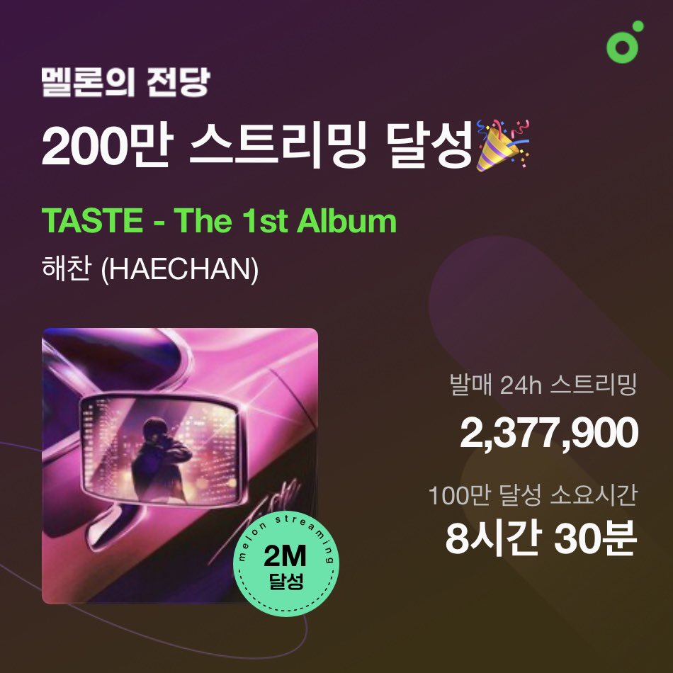 อัลบั้ม "TASTE" ของ แฮชาน NCT คว้า "Melon Millions Album Award" หลังทำยอดสตรีมทะลุ 2,377,900 ครั้งใน 24 ชม.แรก บน MelOn!